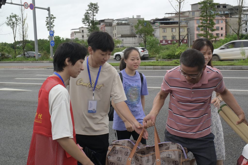 迎新工作期间,我院志愿分为四个小组开展迎新工作,分别为接待组、录入组、宿舍组以及后勤组。迎新现场,所有工作人员热情的迎接来自全国各地的优秀学子,通过对于新生以及家长的耐心解答、具体指导、现场办公,迎新工作井然有序;即使工作量纷繁复杂,但工作人员们迎着大雨仍以饱满的精神状态迎接新同学的到来。