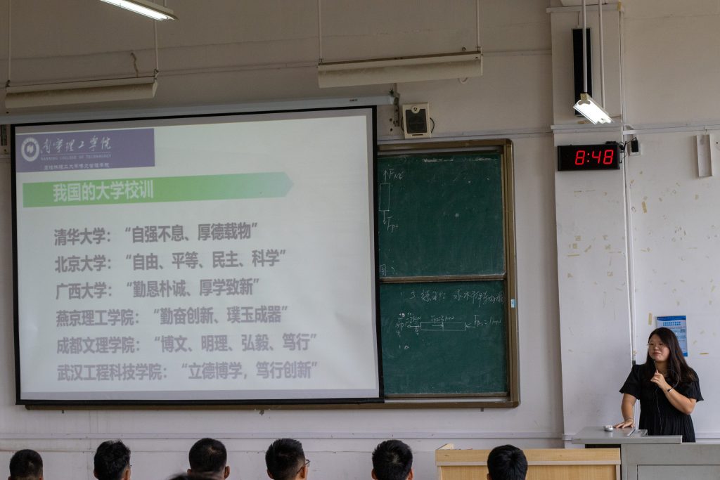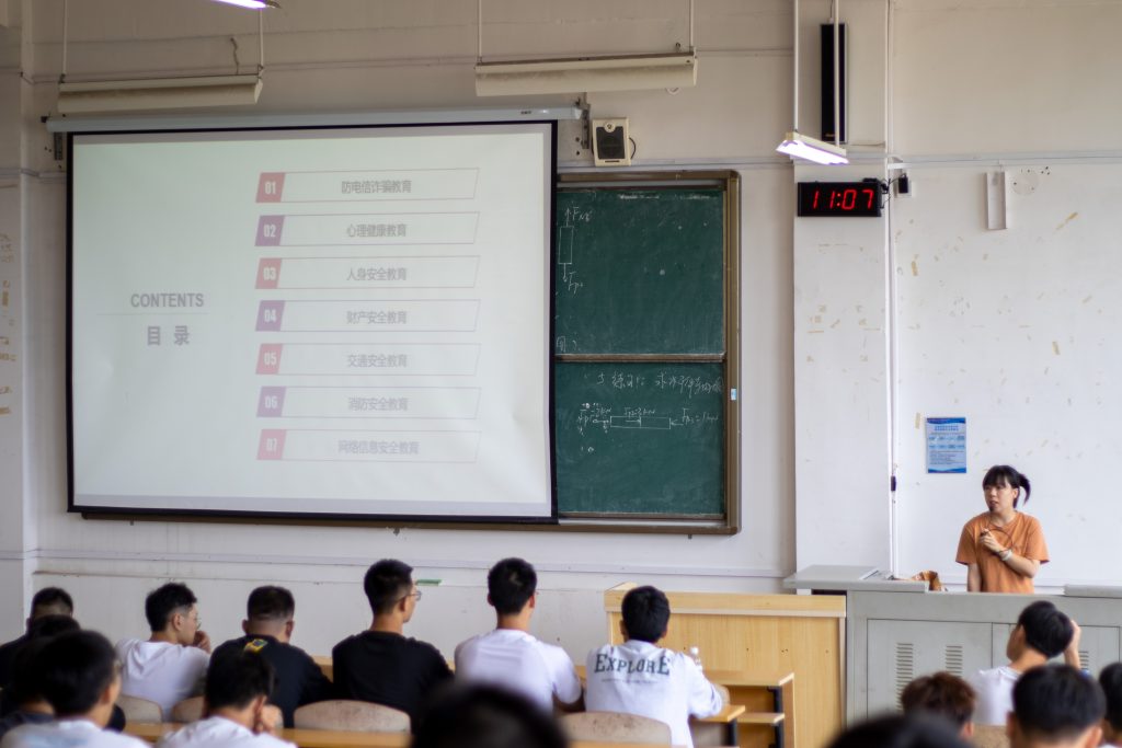 本次入学教育主要围绕思想政治教育、党的基本知识、法制教育与清廉学校建设、安全稳定教育、卫生健康教育、学生手册学习与素质提升教育七个方面展开,通过全方面的授课讲述,使入学教育贯彻于新生在校期间的方方面面。其中闫坤老师讲授安全稳定教育,课上首先用幽默的口吻开头,提高学生的注意力;她在课上提出大学生活的三个关键词:“安全”“独立”和“纪律”。新生们应在保证自身安全和财产安全的前提下, 独立学习,独立生活,在追求自由的同时严守纪律,只有这样,才可以在将来步向社会的途中不断成长。