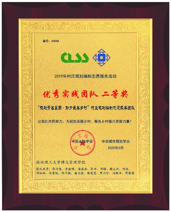 近日,由共青团中央青年发展部、自然资源部国土空间规划局指导,中国土地学会、中国国土勘测规划院、中国城市规划学会联合组织开展的2019年村庄规划编制志愿服务活动评奖结果公布。我校“规划青春蓝图·助力最美乡村”村庄规划编制志愿服务团队荣获优秀实践团队二等奖,成为广西唯一获此荣誉高校。