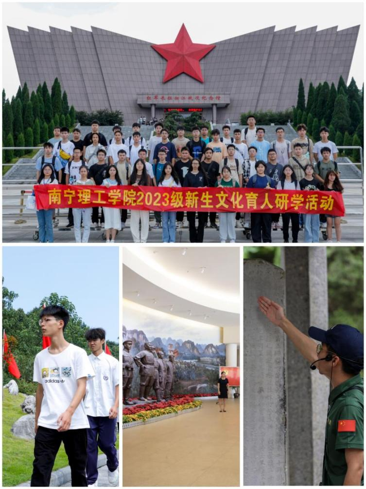 赓续红色文化,争做时代青年。今年秋季开学,学校开展了新生研学活动,立足南宁、桂林两校区办学特色及两地丰富的文化资源和人文历史,组织学生走进广西革命博物馆、广西学生军抗日烈士纪念碑、红军长征湘江战役纪念馆、美国飞虎队桂林遗址公园、桂林市博物馆等场所切身实地地感受革命斗争的光辉历程和英烈们的光辉形象,缅怀革命先烈、赓续红色精神血脉。