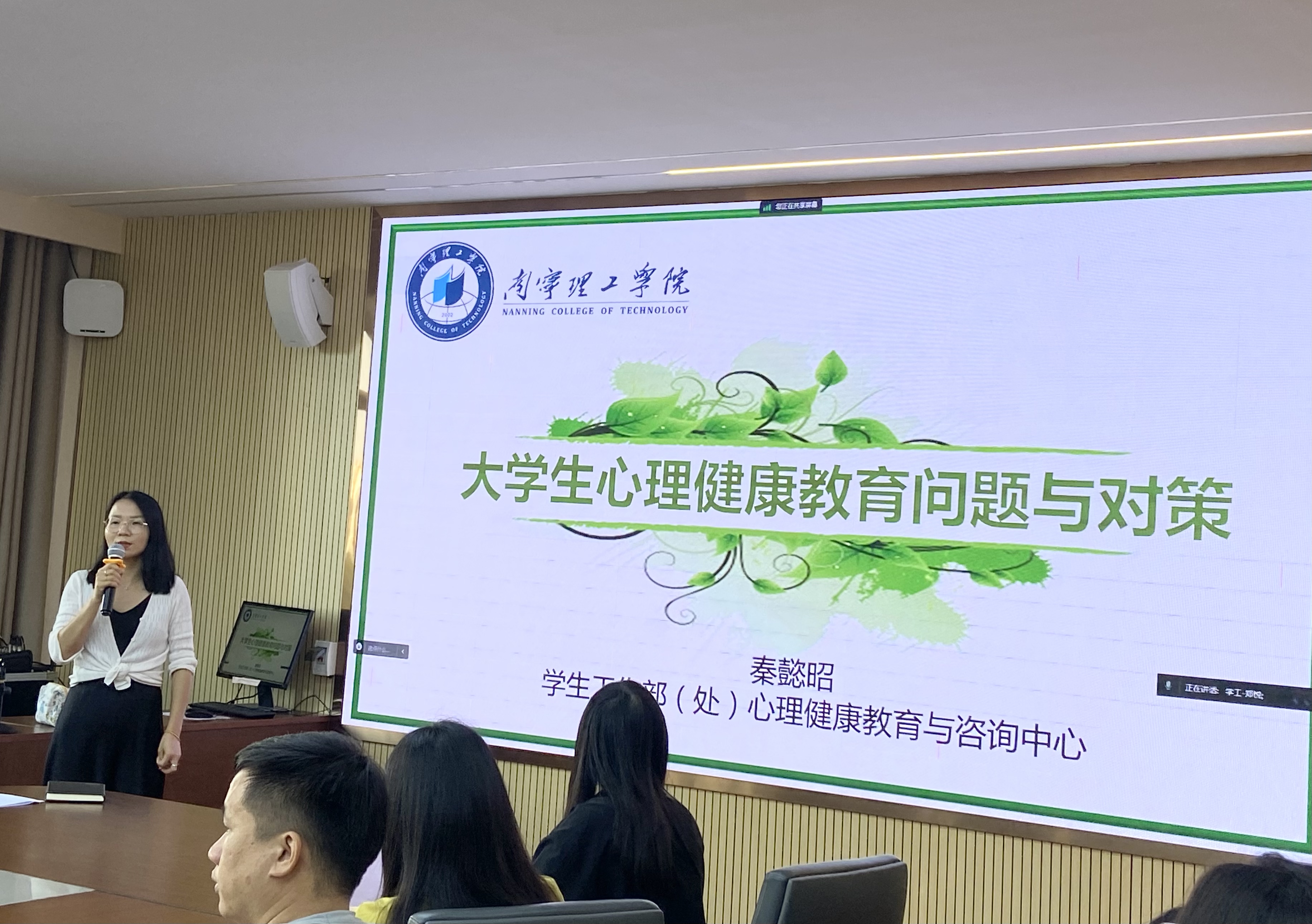 为了帮助全体辅导员巩固心理健康知识,提升责任意识和安全意识,我校学生工作部(处)心理健康教育与咨询中心于10月25日下午在3324教室对我校学工系统全体人员进行了大学生心理健康教育问题与对策专题培训。此次培训由心理健康教育与咨询中心的秦懿昭老师担任主讲。