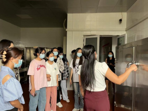 食堂相关负责人和伙管委指导老师为学生代表介绍了食堂日常的工作流程以及管理制度,展示了食堂的管理台账,让同学们了解食品安全的各个关键点,并提到学校与食堂工作人员每日对食堂的管理关键点、风险隐患点进行层层把关,积极开展对应的食品安全管理工作。