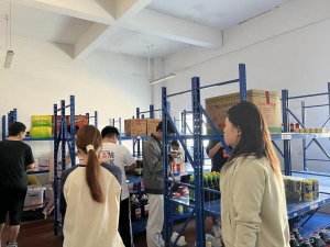 在参观食堂食品的储藏仓库时,学生代表仔细检查了食品的生产日期和保质期,确认了原材料的安全。