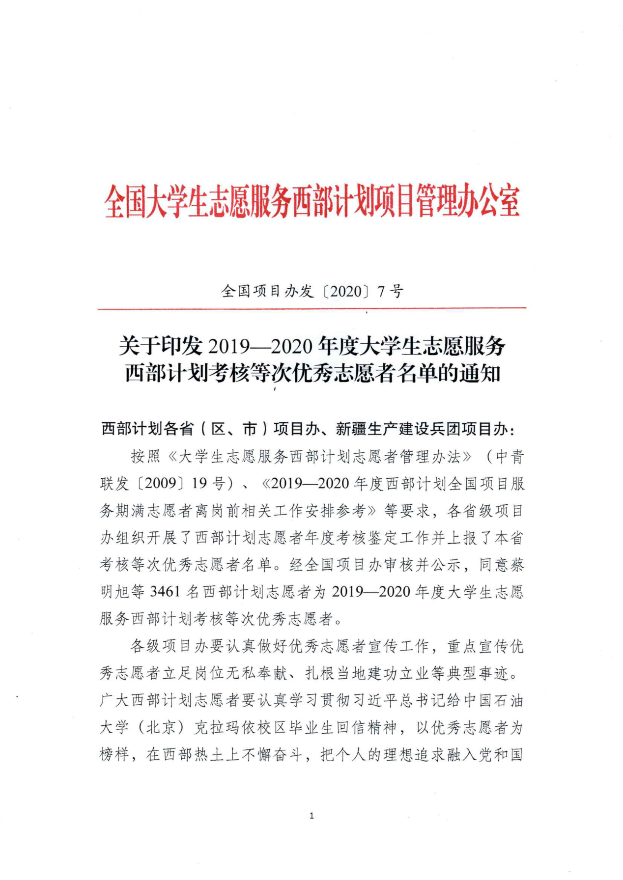 【博文团情·喜讯 】我校学子荣获“2019-2020年度大学生志愿服务西部计划考核等次优秀志愿者”荣誉称号