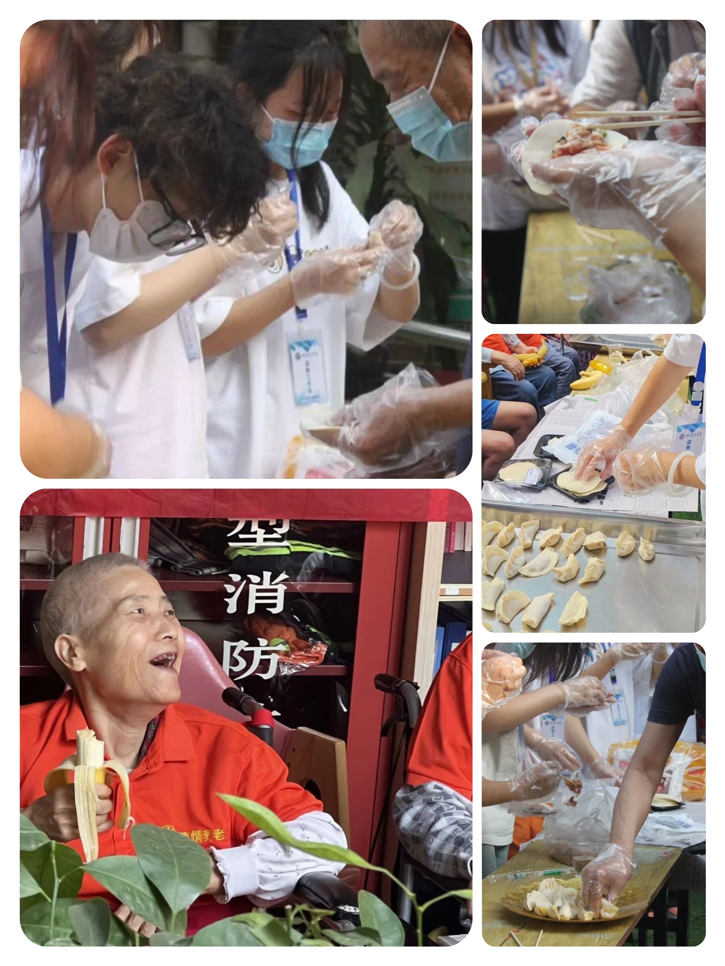 文艺汇演结束后大家陪着爷爷奶奶们包饺子、下象棋、聊天。一位来自东北的爷爷细致颇高的进行现场教学,爷爷自豪的说:“东北人包饺子是最好的。”大家都高兴的跃跃欲试,场面无比温馨。