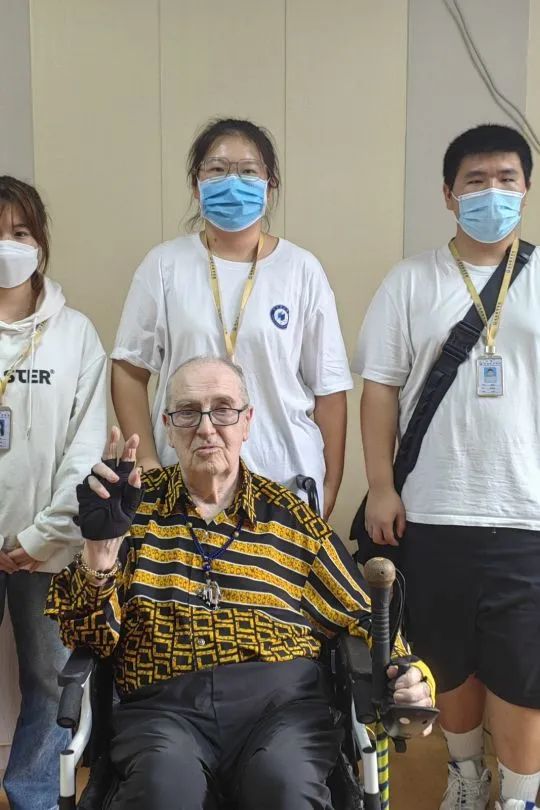 在养老院中我们还认识了一位来自外国的爷爷,大家用英语同老人家聊天。爷爷看到有人来看望自己,眼里满是欣喜,分别时大家都恋恋不舍。