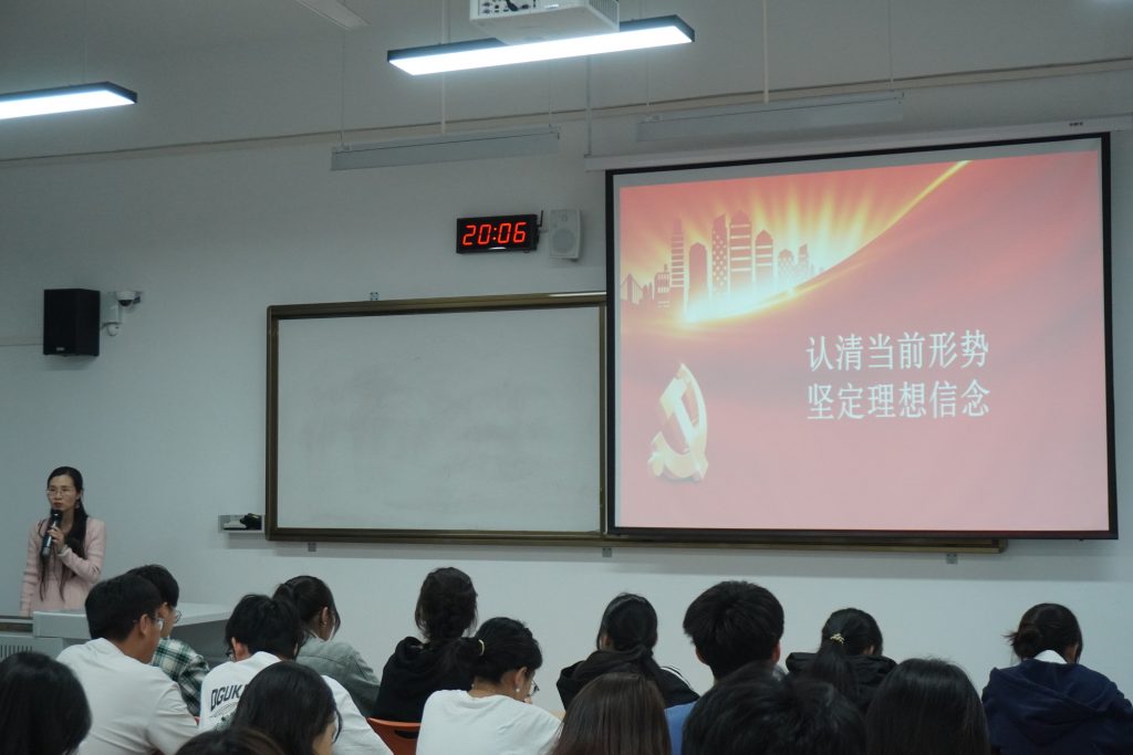 我院于2023年11月27日20:05在A3305教室开展以“把握当前形势·坚定理想信念”为主题的第一期、第二期入党积极分子党课培训第一讲。商学院党总支书记姚顺良主讲。