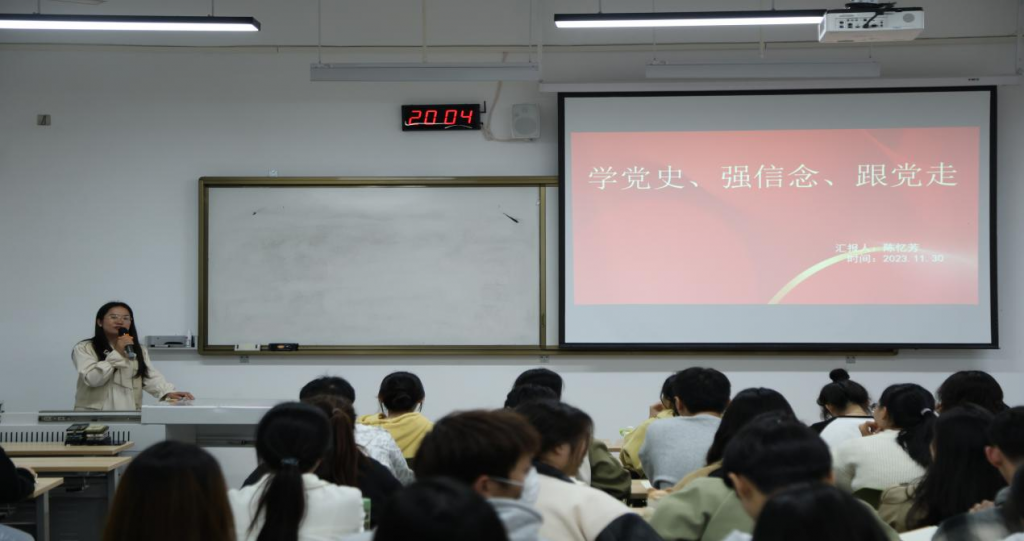 为深入学习贯彻习近平新时代中国特色社会主义思想,从党的百年奋斗历史经验中汲取奋进力量,扎实做好入党积极分子的培养教育工作,提升党性觉悟和政治素养。我院于2023年11月30日在A3210教室开展以“学党史、强信念、跟党走”为主题的第一期、第二期入党积极分子党课培训第三讲。大数据与人工智能学院辅导员陈忆芳老师主讲。
