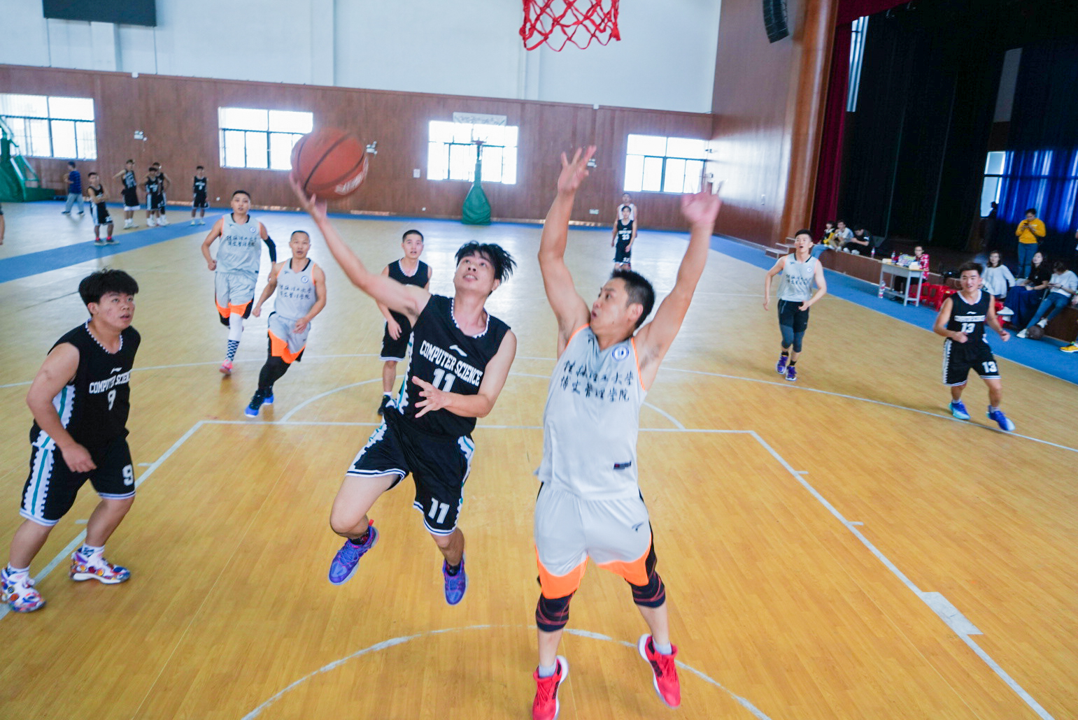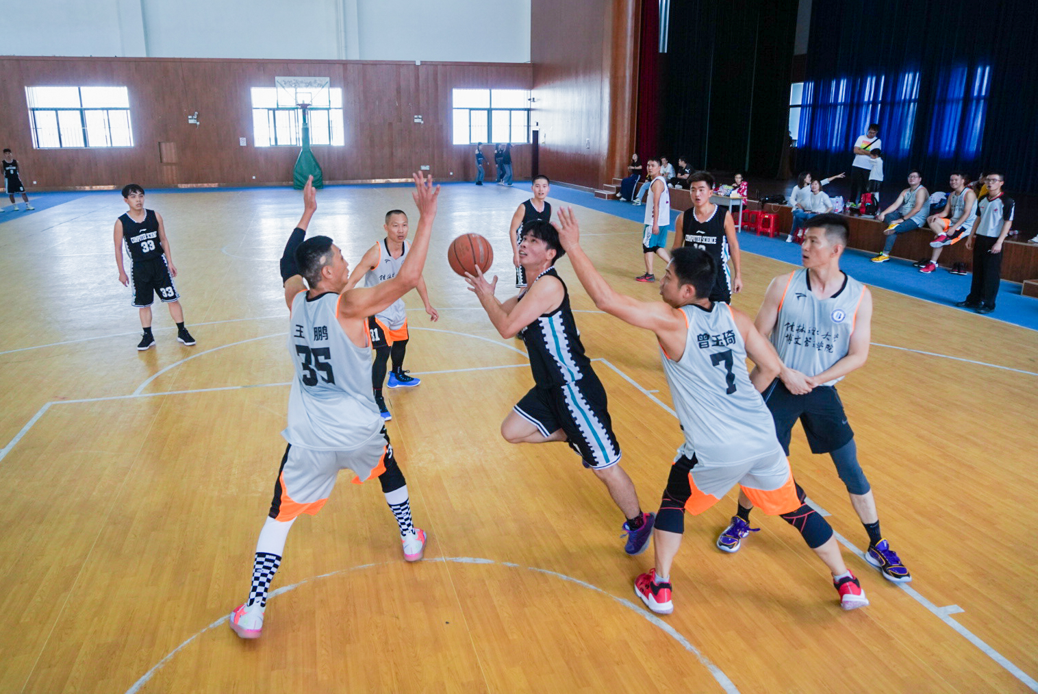 11月7日,我校校友重回母校联络感情,在体育馆开展校友交流友谊赛。校友篮球队由来自各行各业的不同年级校友组成,在校学生自发组织啦啦队加油助威,比赛现场精彩不断。