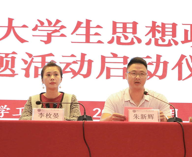 启动仪式开始前,全场共同回顾了我校往年大学生思想政治教育活动视频,视频展现了我校的繁荣生动的校园文化。随后,启动仪式在庄严的国歌声中开始。首先由学校团委书记、学工处副处长为此次活动作工作部署。他强调,开展此次大学生思想政治教育系列活动,要做到以下四点:一是高度重视,加强指导;二是切合实际,深入研究:三是加强监督,科学管理:四是务求实效,及时宣传。接着,学工处处长为本次活动致辞,她指出,加强和改进大学生思想政治教育,培养社会主义可靠接班人是目前高校一项严峻而紧迫的教育教学任务,需要我们全校师生的共同努力并为此提出三点希望和建议。一是要加强校园文化建设,繁荣校园文化。要积极构建一个以理想信念教育为核心,以爱国主义教育、社会主义核心价值观为重点,以深厚的校园人文底蕴为支撑的育人环境;二是要完善大学教育的育人机制。要创新方法、开拓思维,把推进法制教育、形势与政策教育、素质教育、社会公德等作为长期工作。只有把大学生思想政治教育“基础工程”抓好,学生全面发展的目标才能实现。三是希望每位同学要有当代青年的思想,立大志,圆梦想。希望每位同学积极参与此次活动,在活动中能够学到知识、得到收获,树立目标,在日后实现中国梦的生动实践中放飞自己青春梦想,把自己锻造成挑起民族复兴大任的一代新青年。