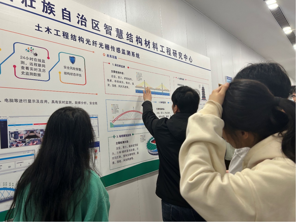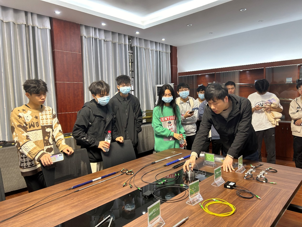 广西汉西鸣科技有限责任公司为国家高新技术企业,专注于土木工程结构智慧化领域,致力于各类型光纤光栅传感元器件及实时在线监测系统研发、生产及技术服务。该公司的工程师黄家柱、生产主任张贺丽及专业工程师刘峰荣校友睢影影热情接待我院师生,先带领我院师生至传感器展示厅对传感器的类别、功能、应用场景进行介绍,并进行技术讲解、实操演示;然后到试验室介绍传感器参数的测定、最后到智能化无尘车间参观各种传感器的内部构造及生产工艺,并在现场进行了深入的交流。