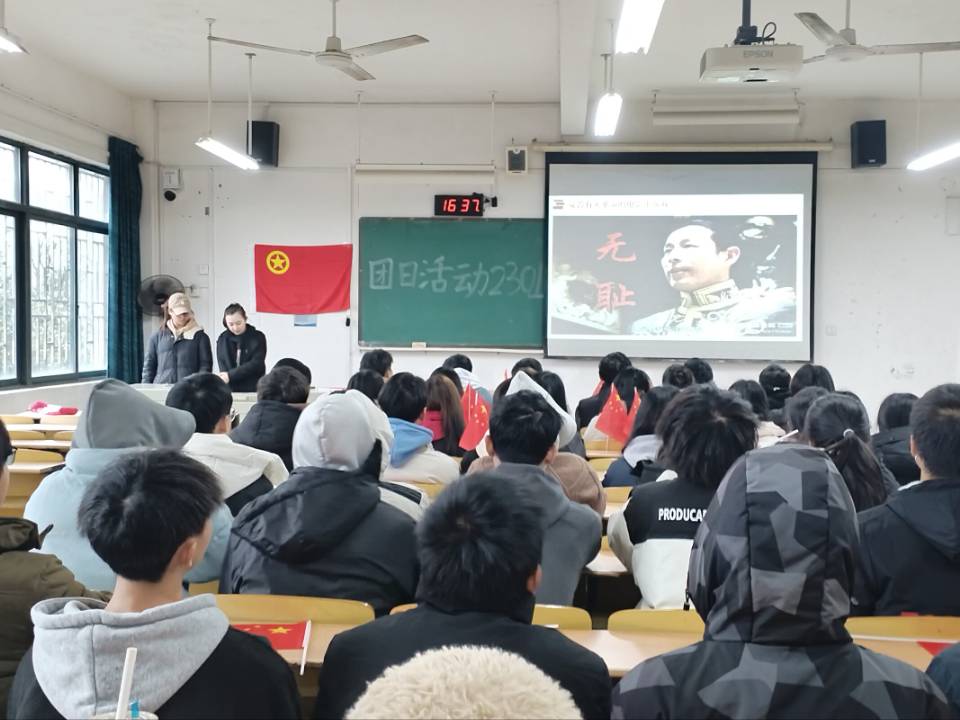 活动由全体齐唱团歌拉开帷幕。活动伊始,一个“讲党史故事,忆峥嵘岁月”视频激发了同学们的爱国热情,视频讲述了新中国成立至今的科学技术的进步和人民生活条件的改善过程,让同学们深刻地领悟到了祖国从站起来,强起来到富起来的伟大飞跃。随后,全体进行了紧张刺激的电影片段竞答小游戏。同学们通过对《建军大业》、《我和我的祖国》、《战狼》、《八佰》等影片片段的观看与知识竞答加深了对中国革命事业的了解与感悟。除了电影片段,还通过《七律·长征》和《示儿》等诗词的问答来让同学们感受伟大革命先辈们的艰辛与不易。同学们积极抢答,活动氛围十分热闹融洽,也更深层次地领悟到党和国家艰苦奋斗的过程。最后,由一段综合了运动员、青年演员和国家航天工作人员等一系列青年代表的短视频结束了本次团日活动,为同学们展示了当代青年的优秀风采。
