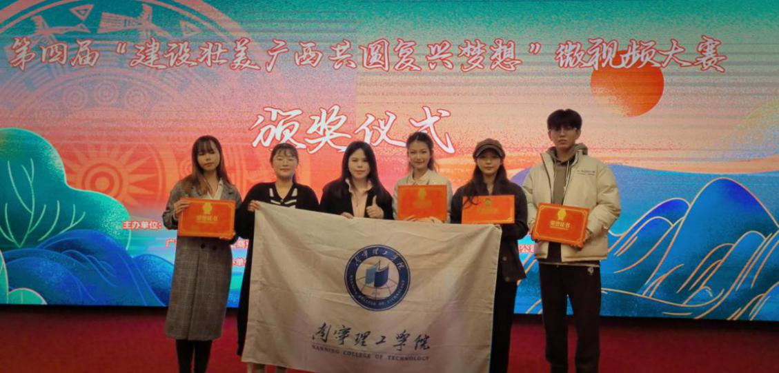 在第四届“建设壮美广西,共圆复兴梦想”短视频大赛中,由李沛泽老师指导的林芷晴、梁菲菲、黄薇、经晓东、张典斌以及广编2105班全体同学共创的《我为什么选择家乡》,由李佩娟老师指导的徐诗雨、于子豪、李佳鑫、曾彤、郭赛楠、杨博翔、马梦怡、刘畅团队创作的《从诗篇中寻找我》两部作品脱颖而出,荣获大赛评选的优秀奖。