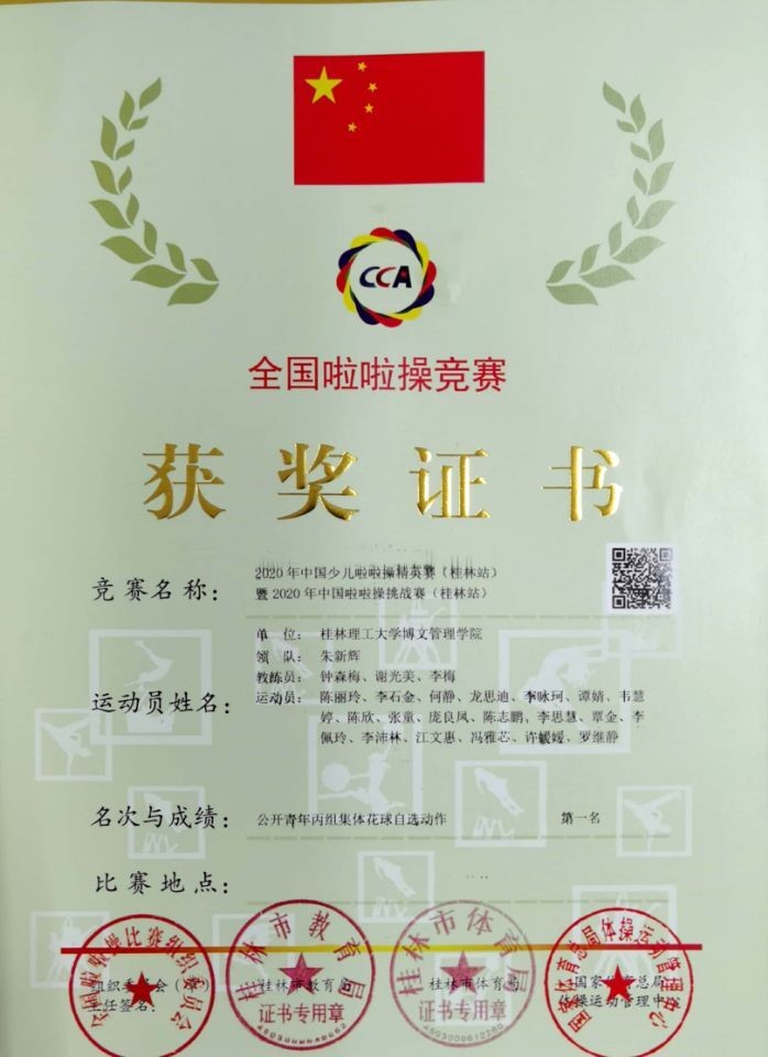 【博文团情】【喜讯】我校SDQ&K啦啦操队荣获“2020年中国啦啦操挑战赛(桂林)公开青年丙组”冠军