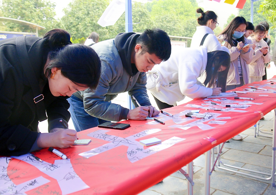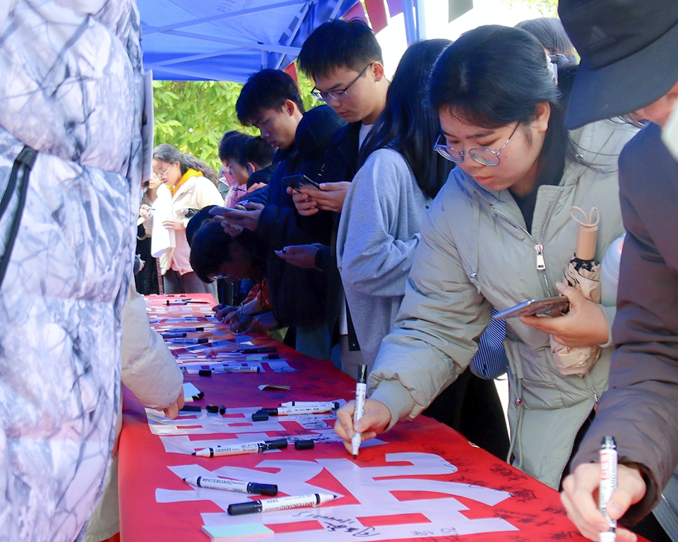 此次横幅签名活动面向全体师生,时间持续一天,活动现场,同学们踊跃参与,气氛热烈,大家纷纷在留言板留下对未来的学业规划、努力的方向及人生目标,充分体现了同学们对未来美好的憧憬,对大学生涯及未来发展的准确定位。