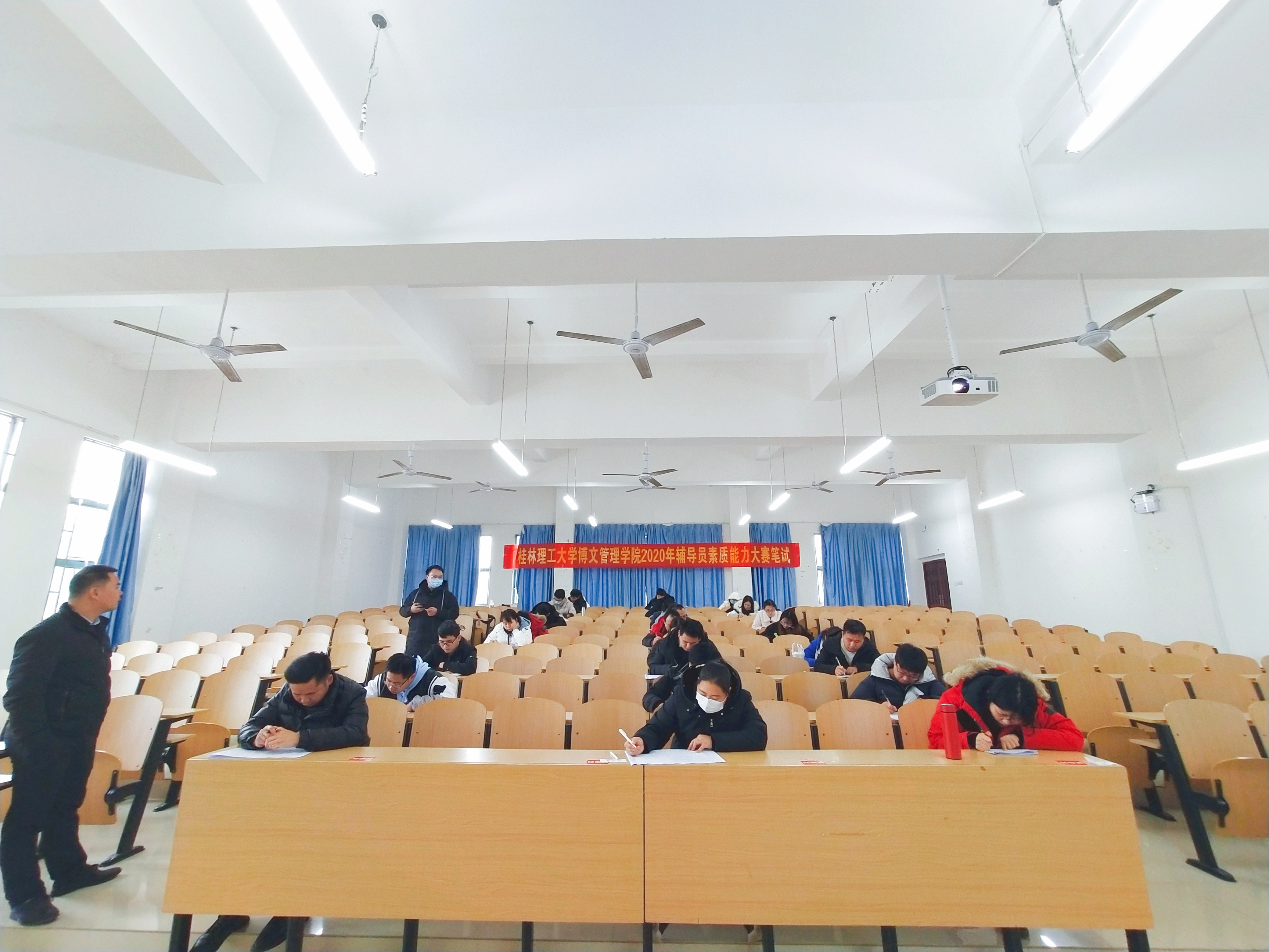 为推动我校学生工作队伍高质量发展,增强理论知识和政治素养,根据我校学生工作队伍职业能力提升大练兵方案要求,12月23日下午,我校在1109教室举行基础知识笔试大练兵,桂林、南宁两校区全体辅导员同时开考。