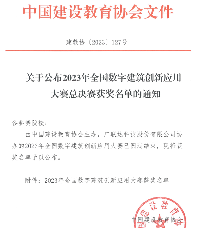 近日,由中国建筑教育协会主办,广联达股份技术有限公司协办的“2023年全国数字建筑创新应用大赛”落下帷幕。经过校内选拔、全国模拟赛、全国总决赛层层角逐,我校土木工程学院土木工程教研室教师指导的学生参赛团队荣获本科组全国二等奖2项、三等奖2项。