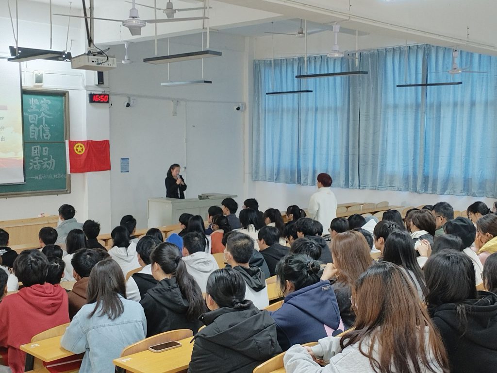 活动由全体齐唱团歌拉开帷幕,团支书常烁骐播放了关于“四个自信”发展史的视频,让同学们了解了“四个自信”的主要内容及提出过程,并组织答题环节以加深印象。同学们积极抢答,准确无误地答出“四个自信”的内容,团支书常烁骐依次播放了有关道路自信、制度自信、理论自信以及文化自信具体内容介绍的视频,并结合实际来向同学们解读“四个自信”的区别,让同学们更加深入和系统地学习了“四个自信”的具体内涵,认识到其在祖国发展道路上所起到的引领作用。为了检验同学们在本次团日活动的收获,团支书常烁骐通过飞纸飞机的方式随机选择了三位同学进行总结发言,他们的发言精彩而又深刻,引发了大家的共鸣。活动尾声,同学们邀请龙舒桦老师进行总结,他对地信2023级两个团支部给与了肯定和鼓励,和同学们分享了关于“四个自信”理解,同学们受益匪浅。最后,他带领同学们自信地朗读到“道路自信,理论自信,文化自信,制度自信”,由团支书宣布活动圆满结束!
