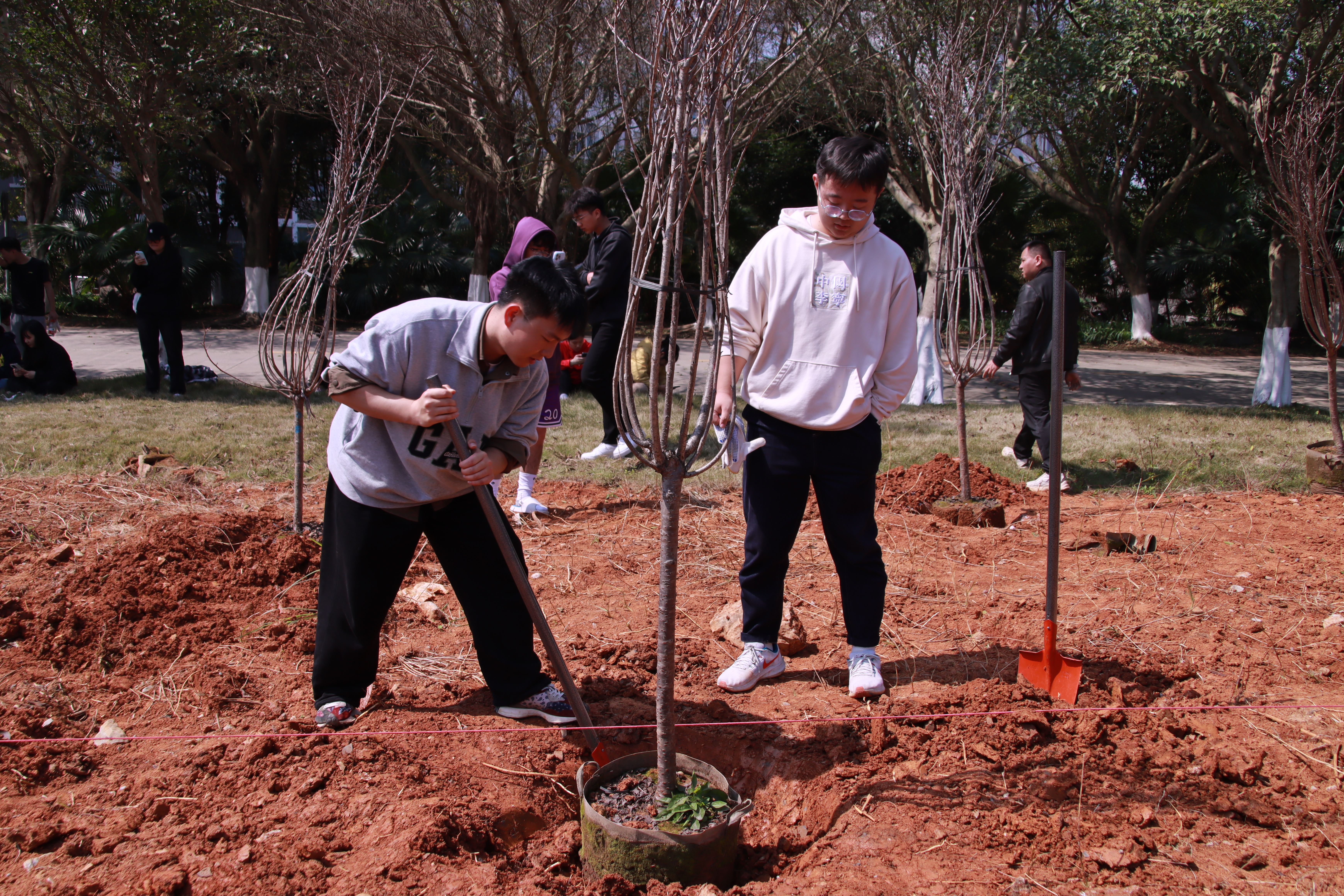 为响应国家植树绿化的号召,引导学生树立和践行绿色生态文明理念,2024年3月12日上午,我校于二食堂附近的空地举办“植此新绿·收货未来”校园植树活动。