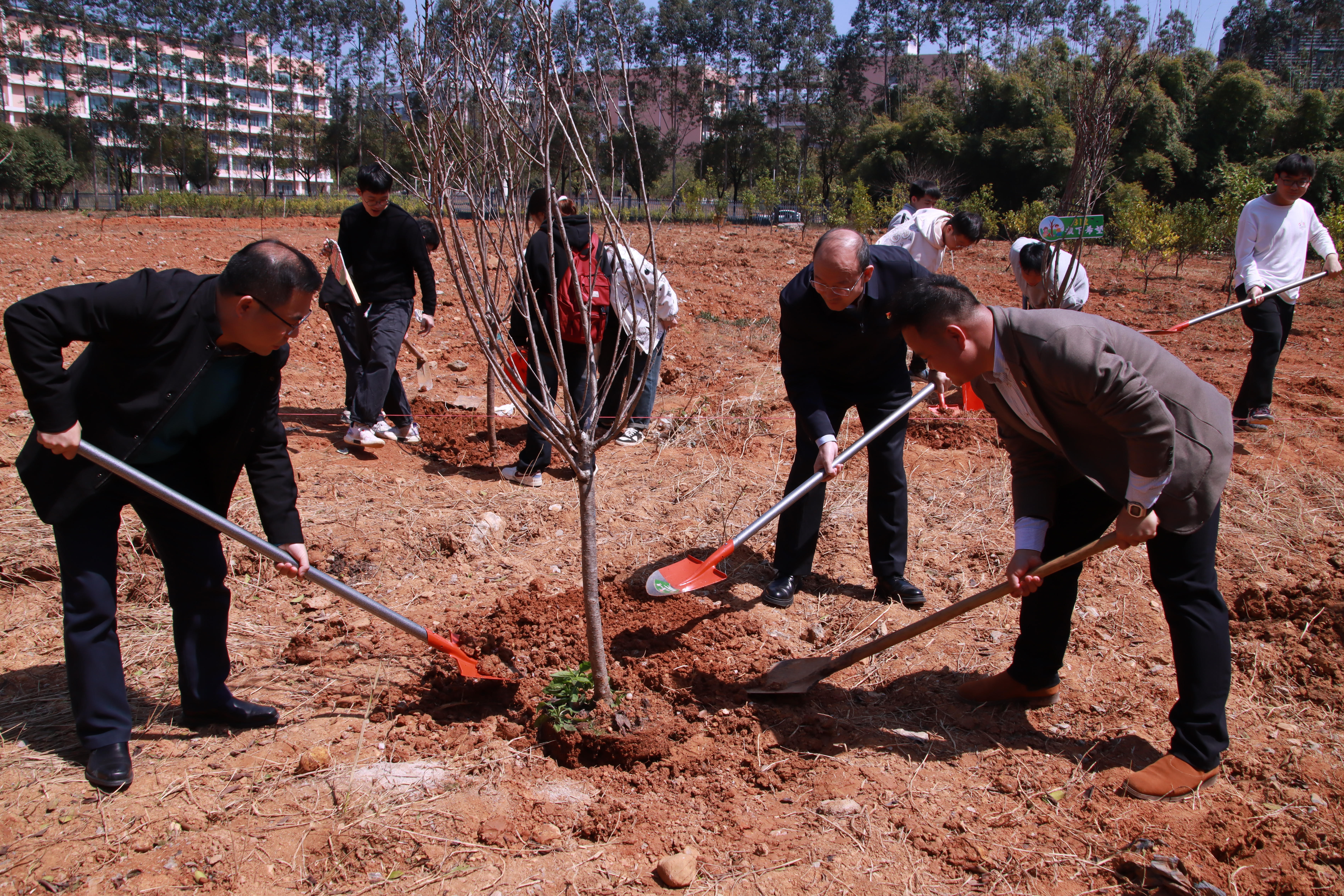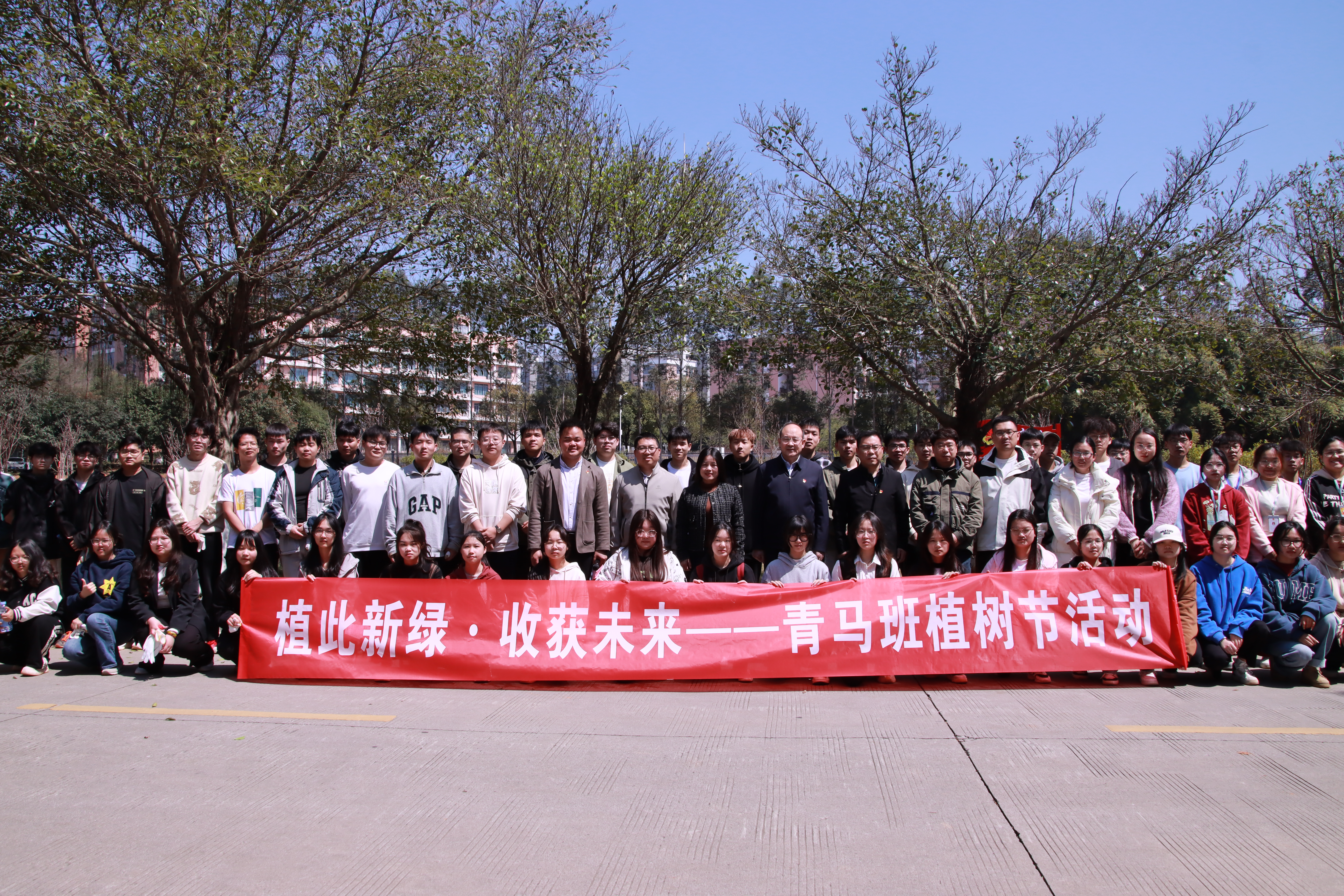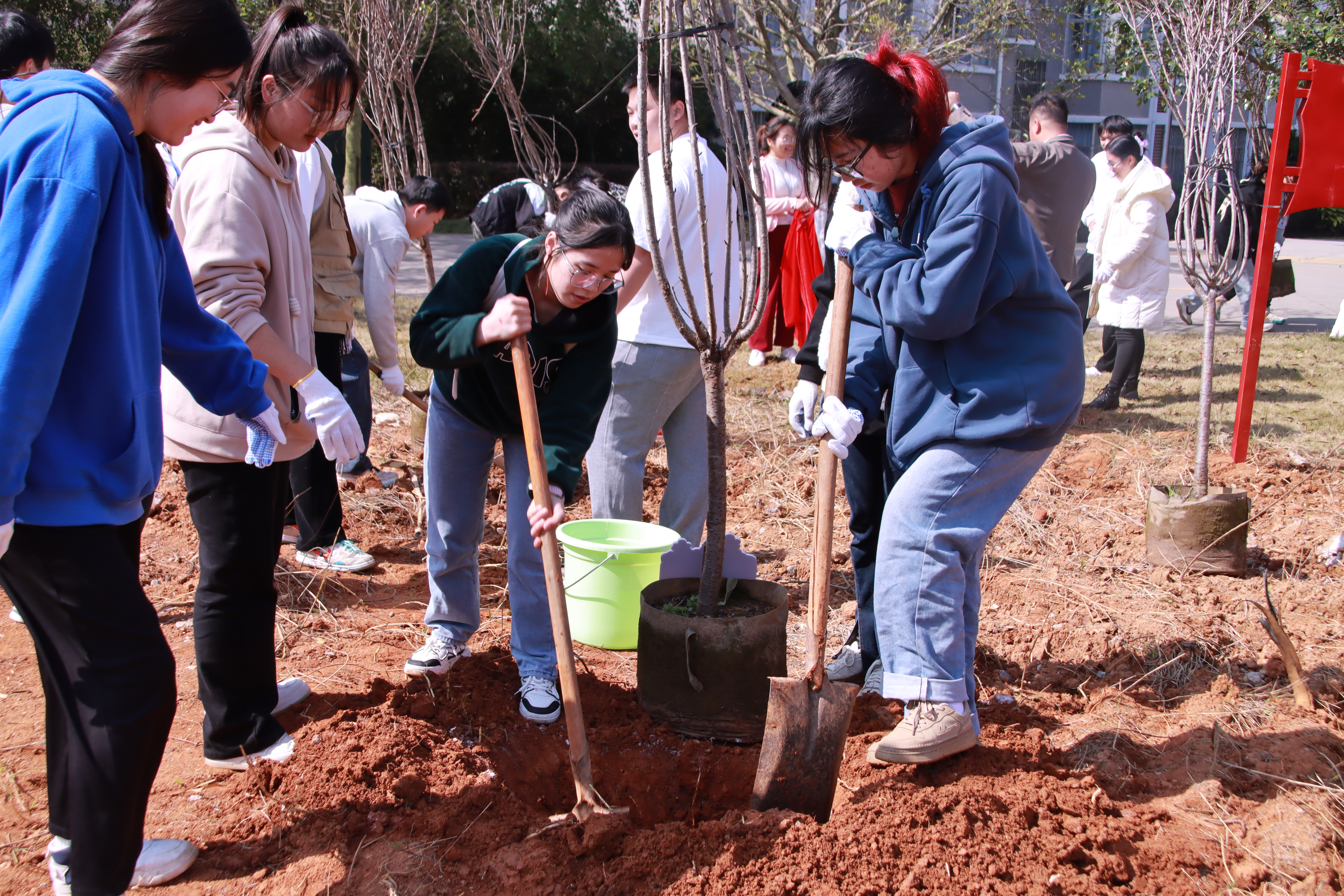 植一株新绿,予校园美好。在植树现场,校领导们握锄挖坑、铲土培苗,师生代表和青马班学员也共同将树扶正对齐、修剪枝叶、助力浇水,细心种植校园新的一片绿园,用行动证明了青年一代坚持不懈、付出贡献的精神。