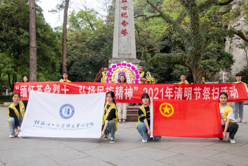 为缅怀革命烈士,弘扬民族精神,在清明节即将到来之际, 4月1日下午,我校团委组织师生代表前往桂林七星公园陈光烈士墓开展清明祭扫活动。本次活动由团委老师郑悦带队,12名学生代表共同参与。