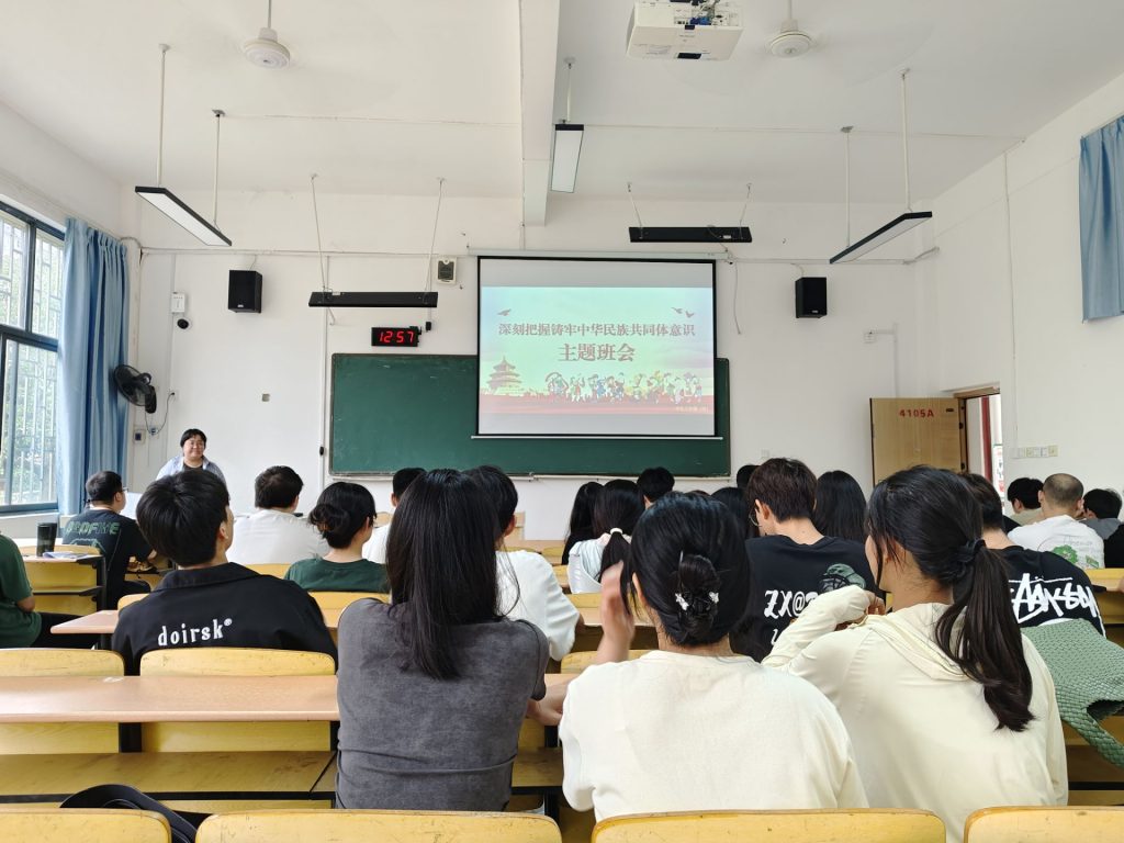 2024年4月28日,土木与工程学院2023级土木工程、工程造价、建筑学专业学生以“深刻把握铸牢中华民族共同体意识”为主题召开班会。会议由辅导员秦伟灵主持。