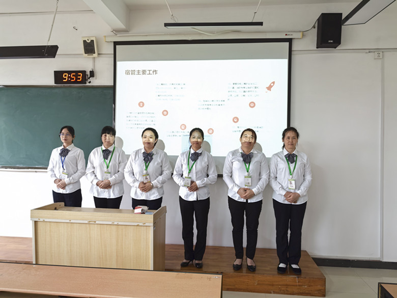 2024年是后勤保卫处“服务质量提升年”,为进一步增强公寓服务人员岗位责任意识,提高公寓服务质量,创建和谐、稳定的公寓住宿环境,更好地为广大师生服务,4月29日上午,后勤保卫处公寓管理中心在4211教室开展2024年春季公寓服务人员岗位技能提升培训,公寓管理中心主任刘小平、物管干事、外包单位负责人、全体宿管、保洁员参加培训。