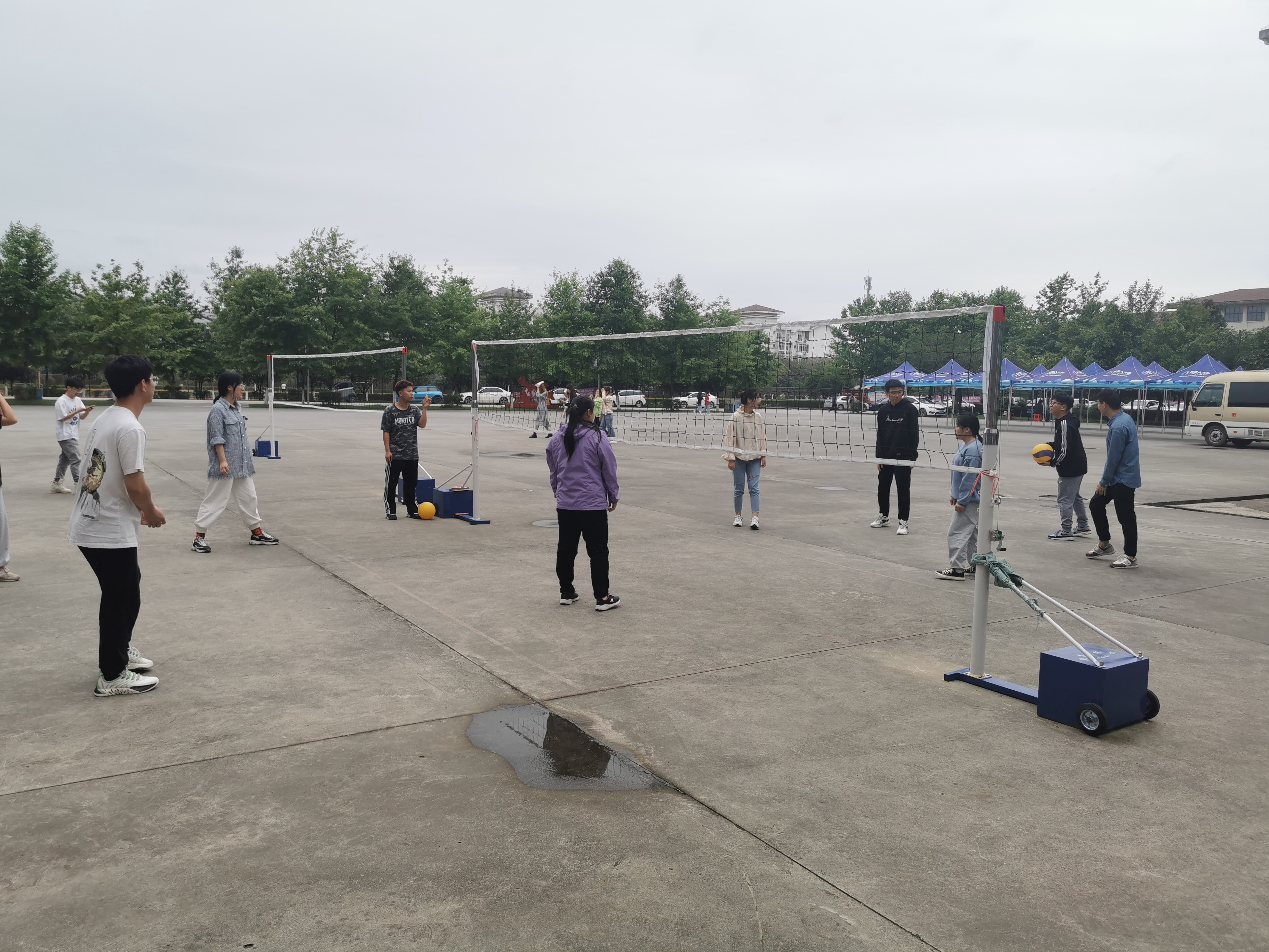 4月25日下午,我院学生第三党支部与党员服务中心为了丰富业余和课余生活,加强老师与学生之间的交流,增强大家的活力与凝聚力,在二栋广场开展了气排球团建赛。