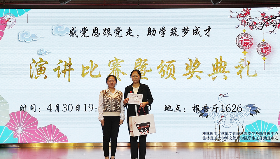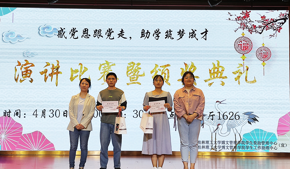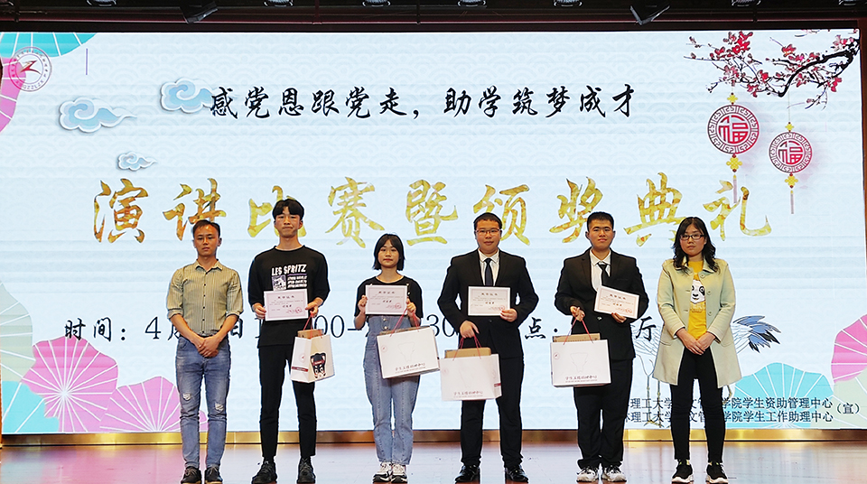 4月30日晚,我校在报告厅举行“感党恩跟党走,助学筑梦成才”演讲比赛暨颁奖典礼,学工处老师赵雯君,史利荣以及各二级学院辅导员出席本次活动。