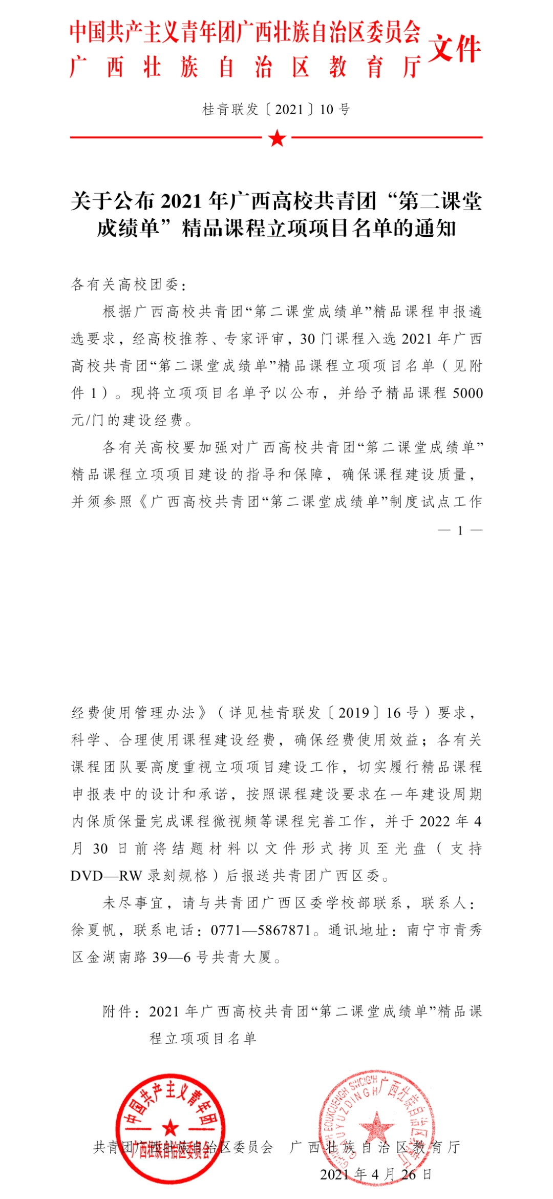 【博文团情】喜报|我校喜获2021年广西高校共青团“第二课堂成绩单”精品课程立项项目