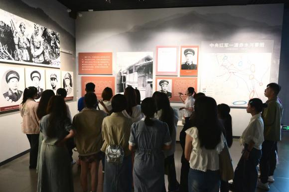 四渡赤水,出奇制胜。”研学团队走进四渡赤水纪念馆,在讲解员的带领下,追溯红军四渡赤水所经历的艰难历程,师生们深感革命胜利的来之不易。“红军不抓丁、不拉夫、不派款、不拿群众一针一线。”参观纪念馆时,师生更是被犹如鱼水相依,坚不可摧的军民情所感动。通过形式多样、内涵深刻的学习,师生们领略了四渡赤水红色文化展现出的中华民族“敢于”和“勇于”斗争的大无畏精神。