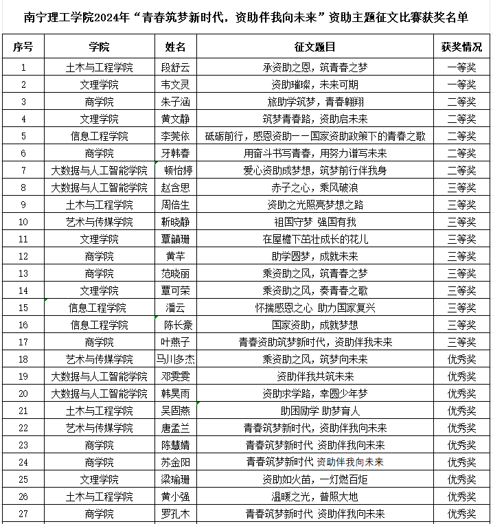 [学工前线]“青春筑梦新时代 资助伴我向未来”|南宁理工学院2024年资助主题征文活动圆满落幕