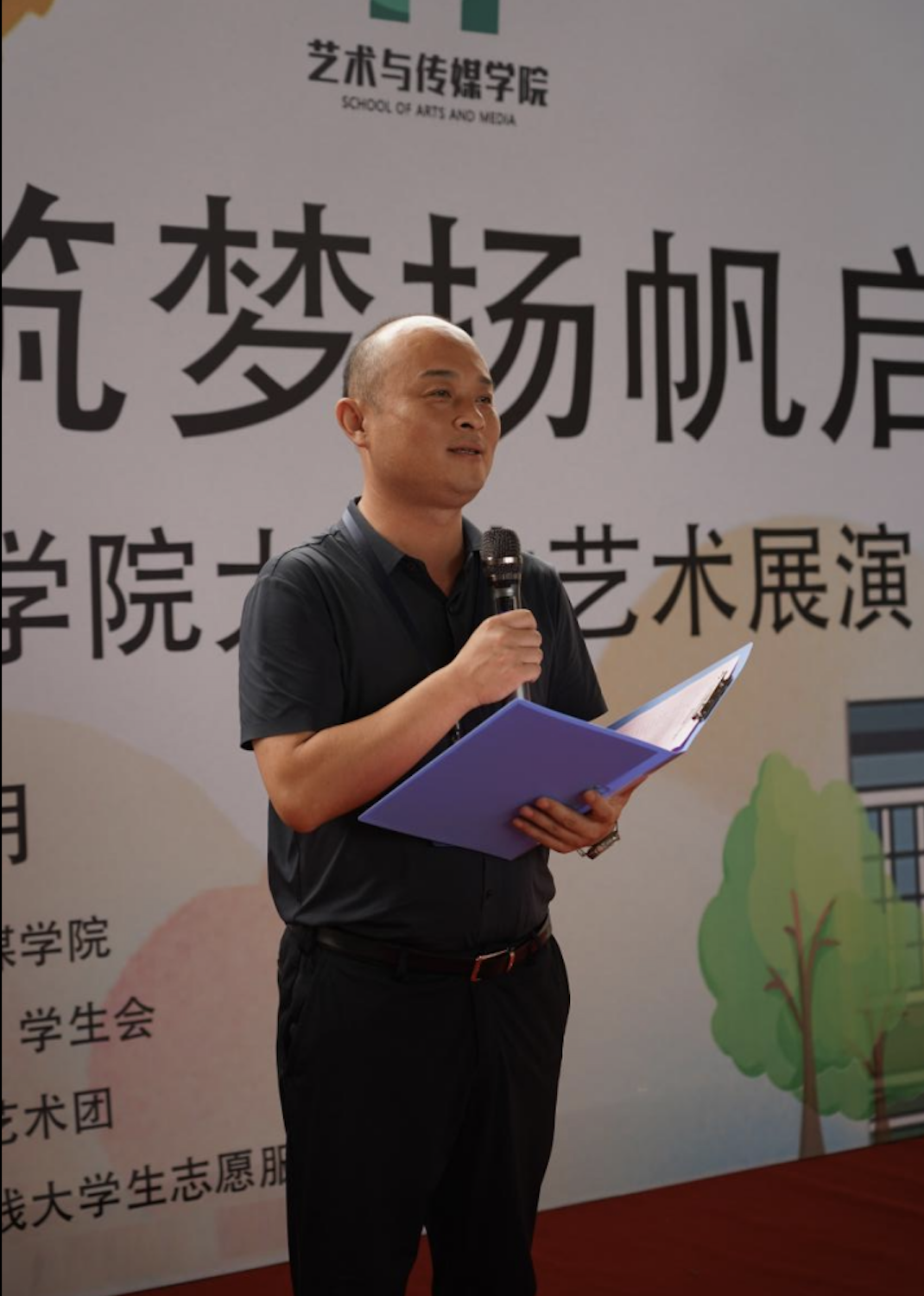 为贯彻落实党的二十大精神,加强和改进新时代学校美育工作,大力发展素质教育,以美育人、以美化人、以美培元,艺术与传媒学院于6月12日在图书馆举办“砥砺前行向未来 筑梦扬帆启新篇”为主题的2024届毕业晚会暨大学生艺术展演活动。学校董事长尹少华,纪委书记、副校长冯正垚,党委副书记、校长助理马纪涛出席活动;学校各职能部门有关负责人,艺术与传媒学院党政班子成员,师生代表、2024届毕业生代表参加活动。