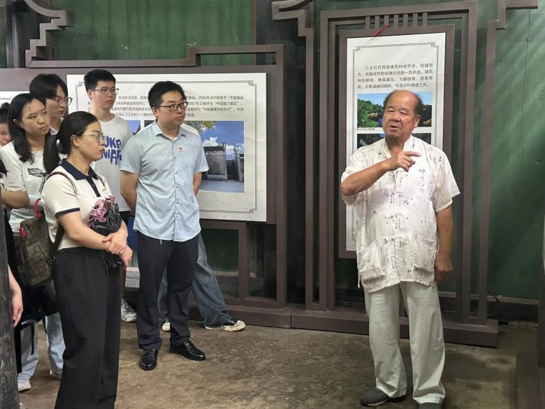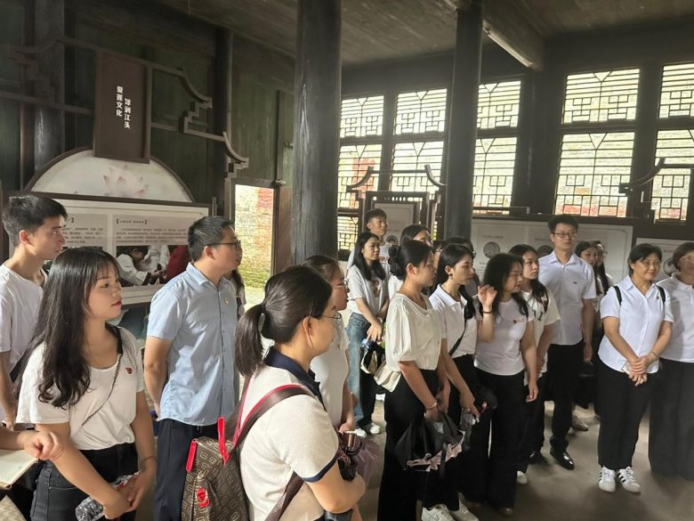 师生党员代表们在江头村参观了爱莲家祠、举人路、进士街、秀才巷、护龙河、聪明井等具有标志性的文化建筑,在讲解员对周敦颐生平和周氏家训的详细介绍下,了解了周氏家族世代清官渊源,切身感受江头洲廉政文化教育基地深厚的历史文化底蕴,对周氏家族为官清廉、体察民情、鞠躬尽瘁的高尚品质肃然起敬。