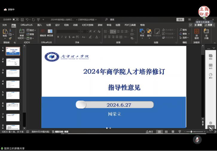 6月27日,商学院召开了2024版国际经济与贸易、金融科技、数字经济专业人才培养方案制定/修订研讨会。会议以腾讯会议线上进行,由国贸教研室主任陈宣佑主持,副校长杨鲜丽、院长姚瑞基及国贸教研室全体教师参加会议。