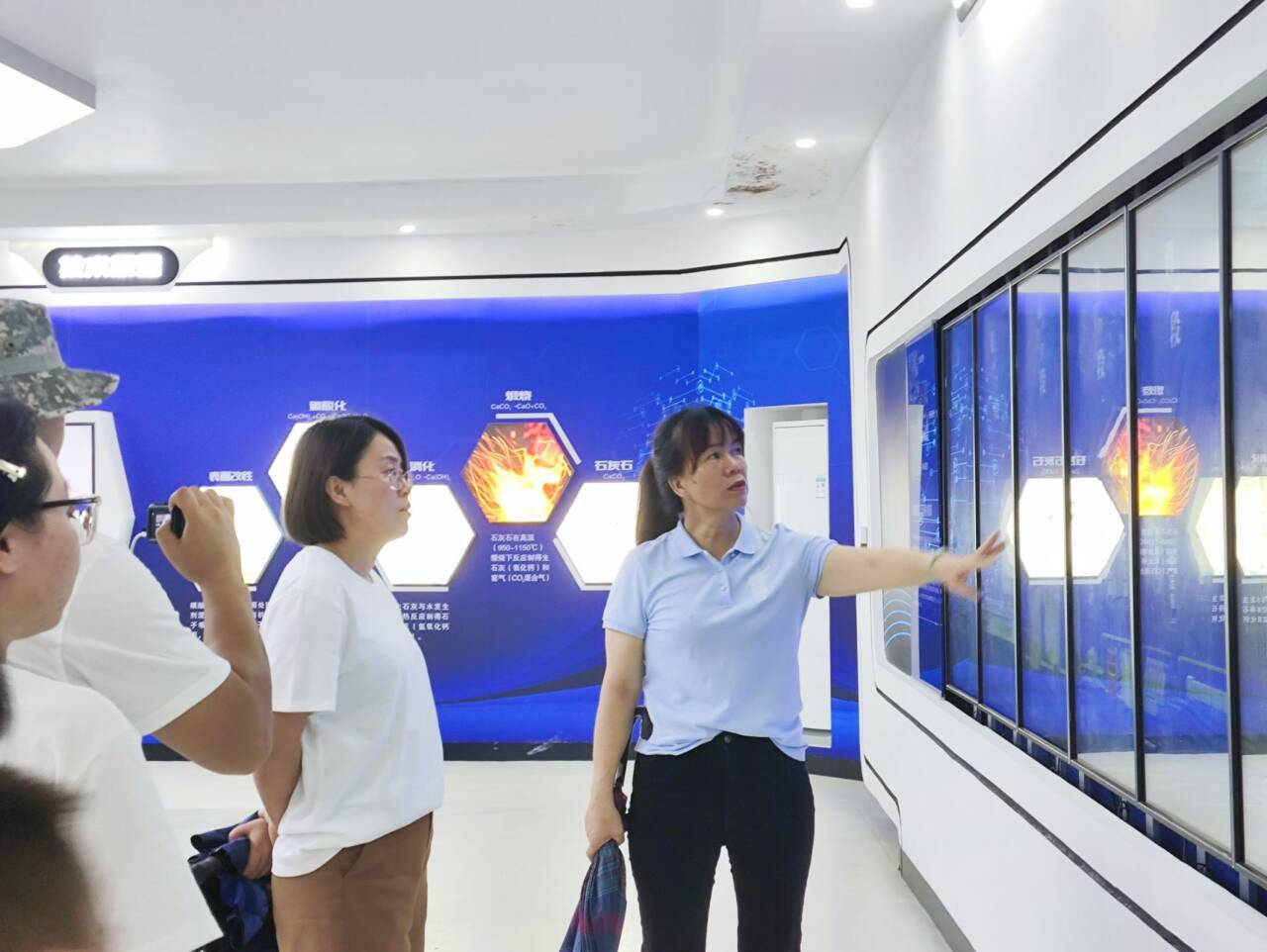 (图为团队成员正在聆听讲解员介绍华纳纳米钙 中国青年网通讯员 李玉琪 摄)