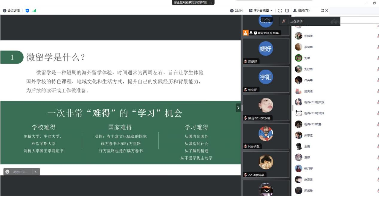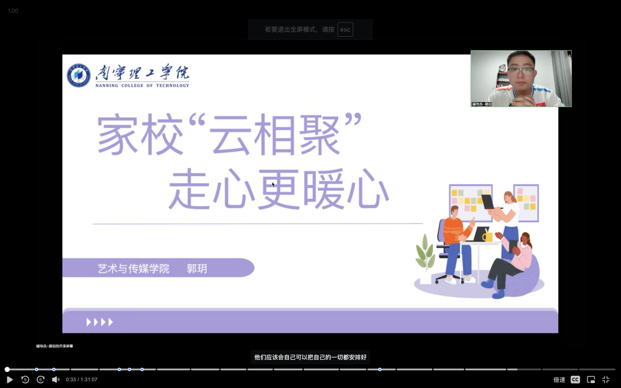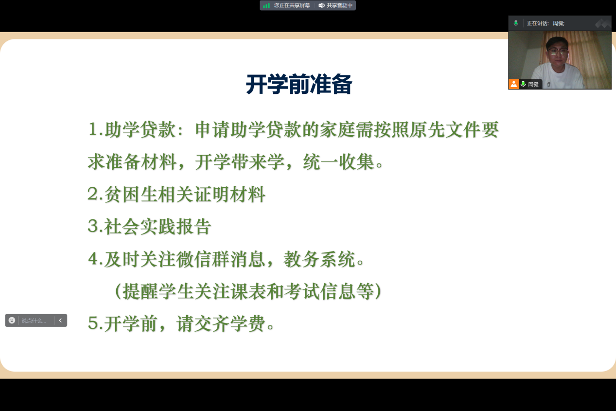 在云家访会议上,辅导员主要围绕安全教育、学生发展、职业规划、个人赋能、综合能力提升等多方面内容展开,通过数据分析及案例讲解,进一步引发家长对学生今后发展的思考。同时,辅导员向家长反馈所带学生在校的学习、生活情况及秋季开学注意事项,并与家长交流互动,形成协同育人工作合力。