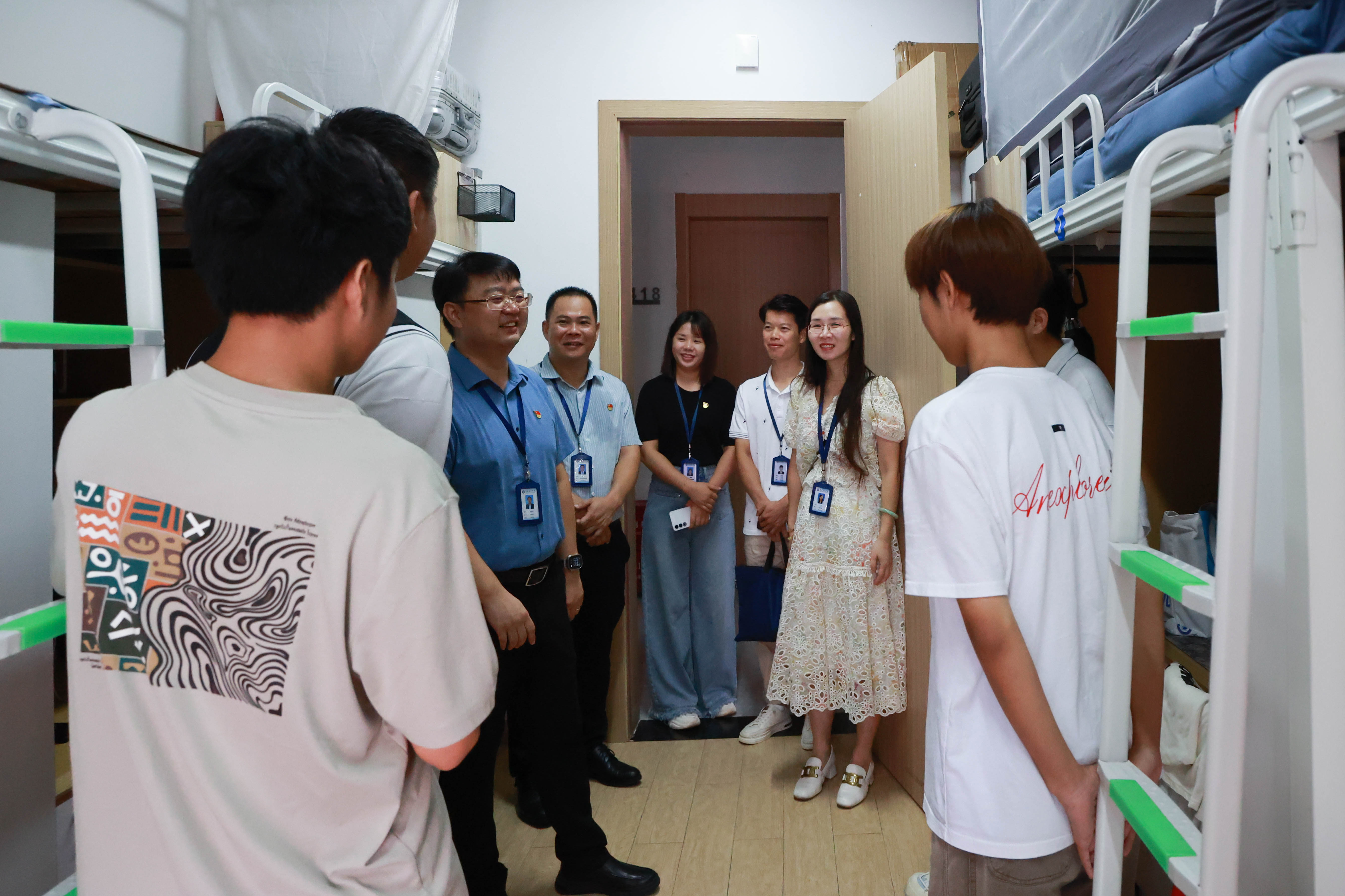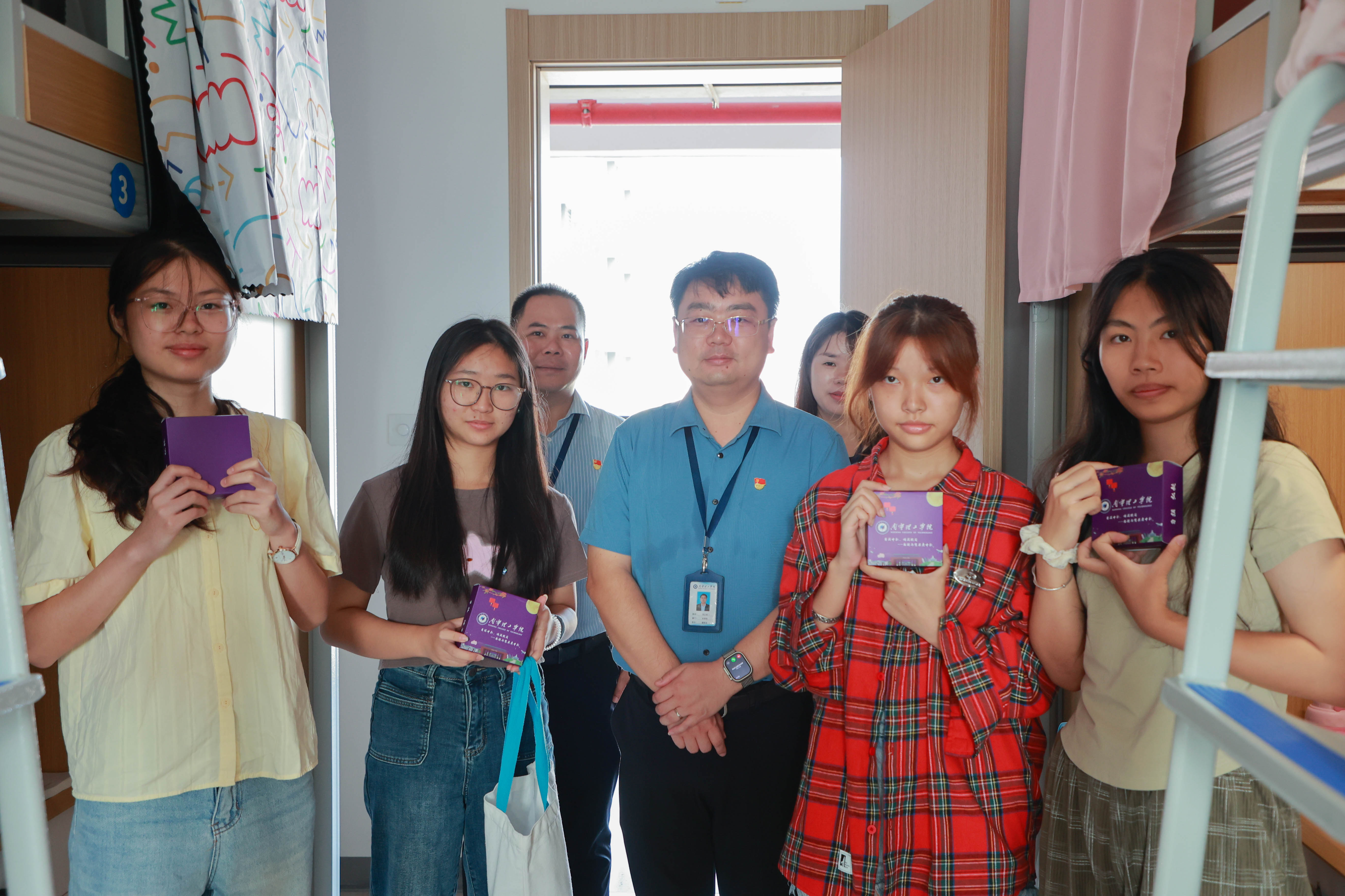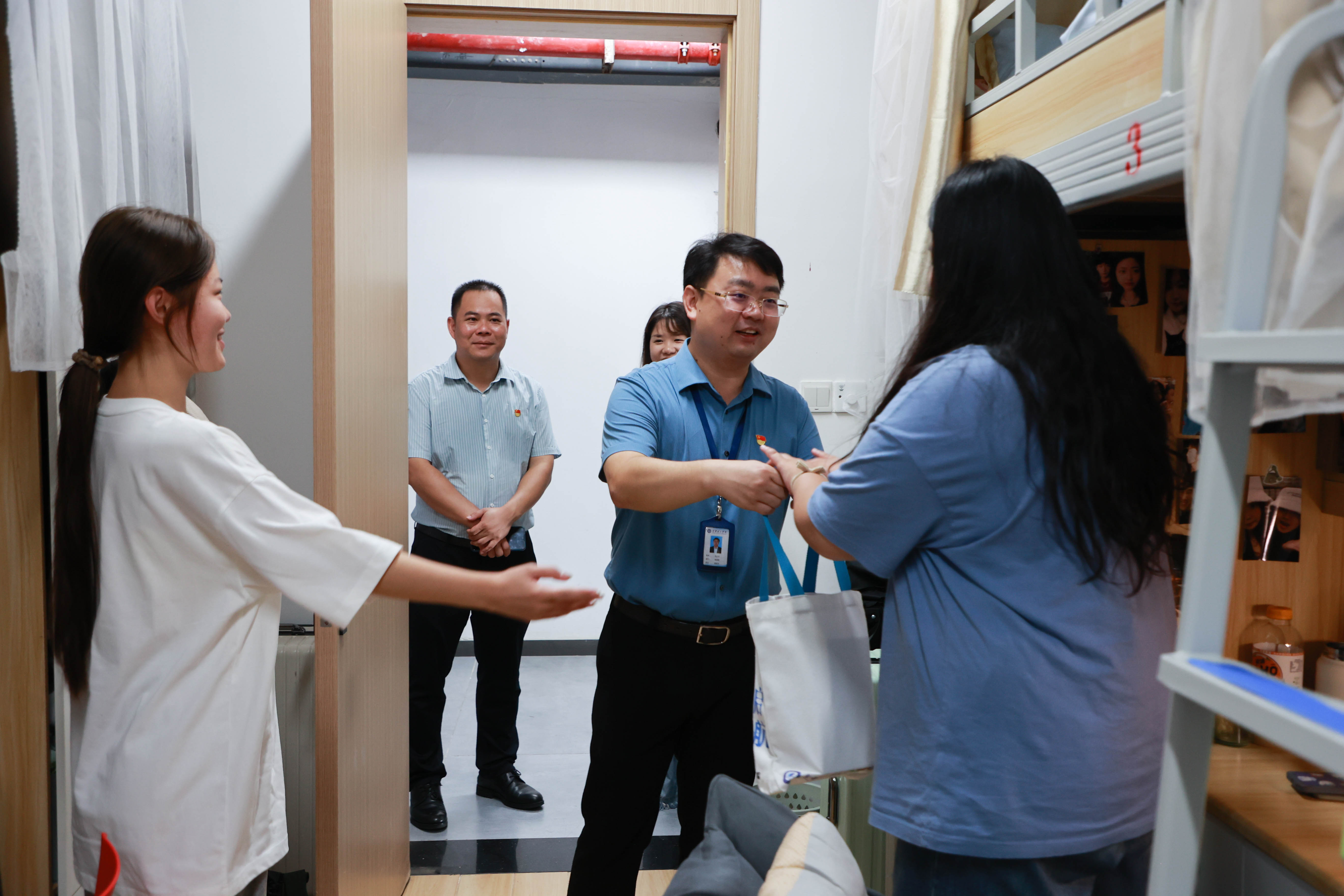 9月13日上午,学校纪委书记、副校长冯正垚在艺术与传媒学院相关人员的陪同下,深入学生宿舍,为同学们送上节日的诚挚祝福与问候。走访中,冯正垚代表学校送上满满的节日祝福及定制月饼,就学生大学生活、学习等问题和同学们进行交流。他亲切地询问同学们:“你来自哪里的?”“适应大学生活吗?”“生活上、学习上有什么困难吗?”,他深入了解同学在生活和学习上的困难,同时希望同学们在遇到生活和学习的问题时,要积极与辅导员沟通;并就学生关心的学习发展规划等问题给予建设性的建议,寄语他们勤奋苦学、慎思笃行、修身立德,锤炼精神品格、厚植家国情怀,在学习奋斗中创造美好未来。
