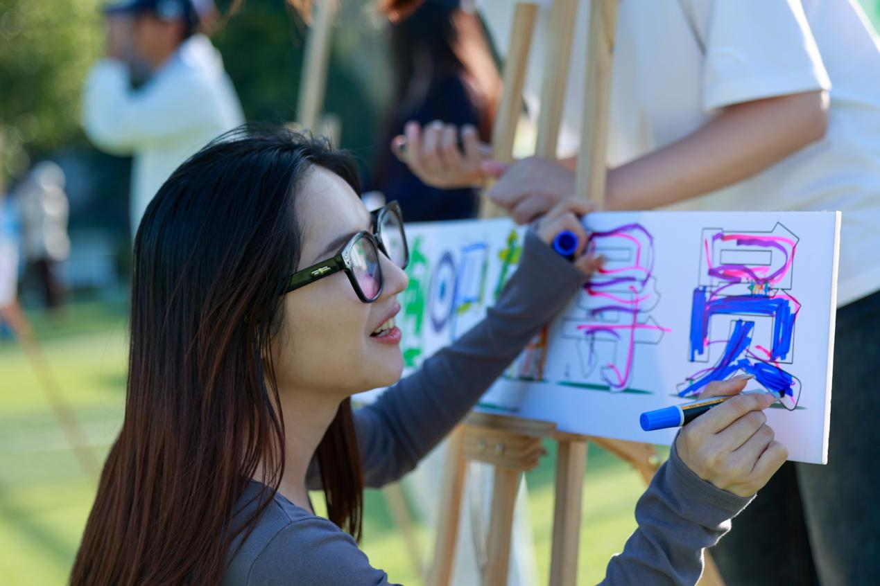 活动伊始,全体辅导员随机分为八支队伍。从激昂的 “红歌冲锋号” 环节,到考验协作能力的 “同舟共济”,再到充满创意的 “书画”奔跑吧•辅导员””,最后以游戏 “特色套圈” 项目为本次活动画上圆满句号。在活动过程中,辅导员们齐心协力、团结协作,为了集体荣誉全力以赴,现场气氛欢腾热烈。