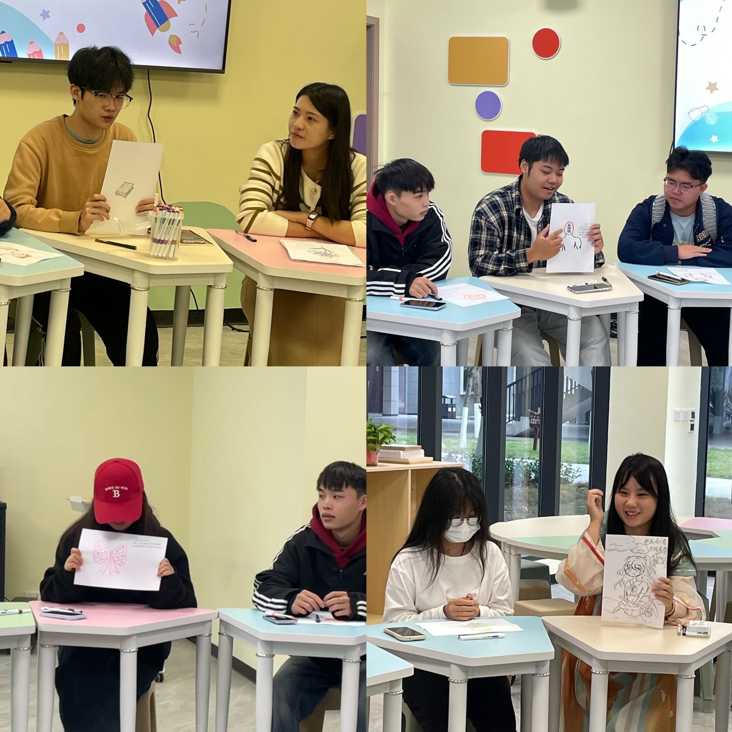第二个环节“我的自画像”心理绘画体验活动,同学们尝试画出内心中自己的自画像,将内心的情感和想象投射到画纸上。在轻松的音乐氛围中,大家运用缤纷的色彩和多样的图案,绘制出独一无二的自我。绘制完成之后,同学们积极分享自己所绘制的画像以及背后的故事。分享个人的理解和感受,描述当下的自我状态。这一过程不仅是一次艺术的创作,更是一次心灵的疗愈之旅。同学们纷纷表示,通过绘画,他们更好地了解了自我,回归了本性,内心得到了疗愈。