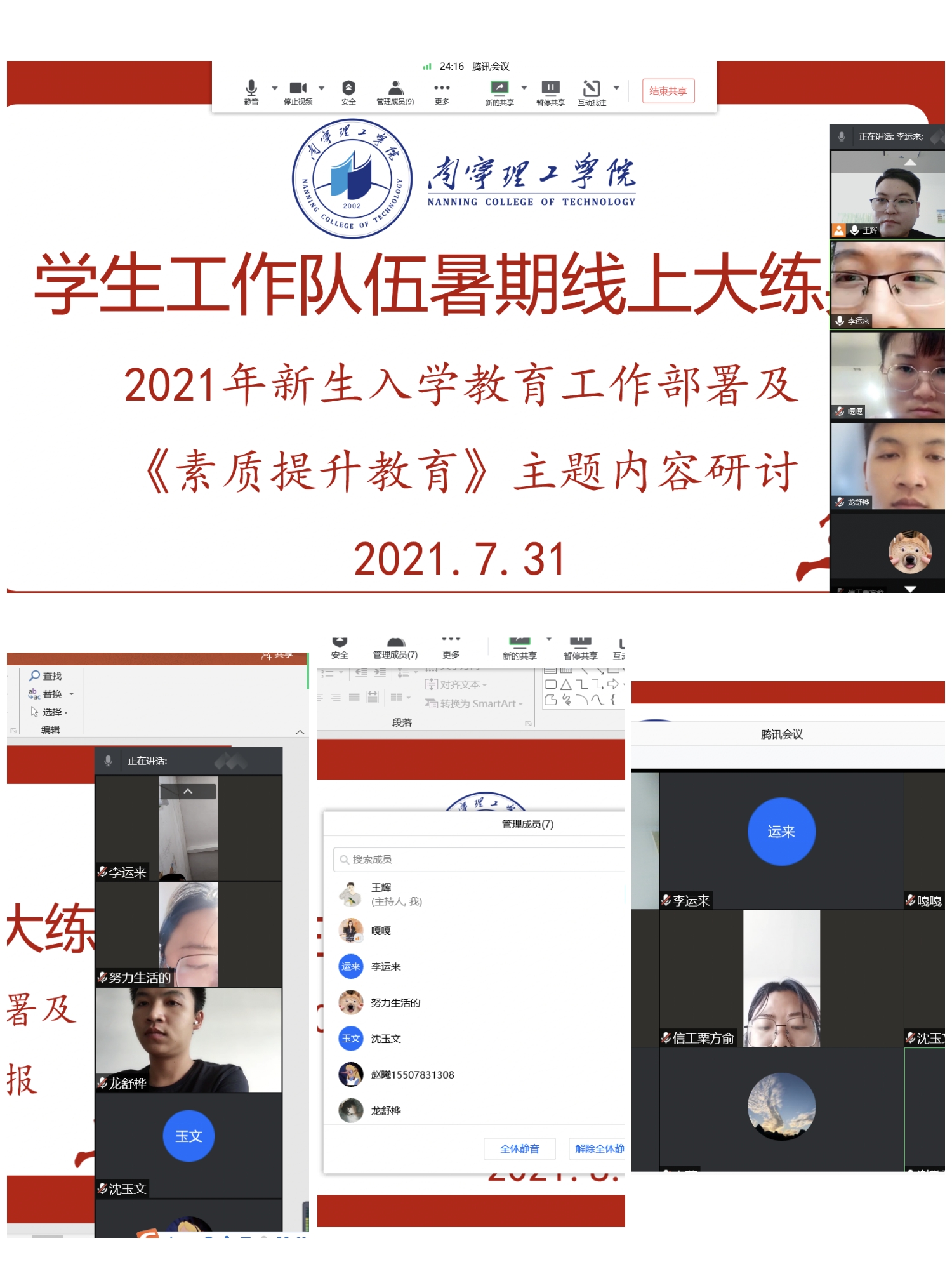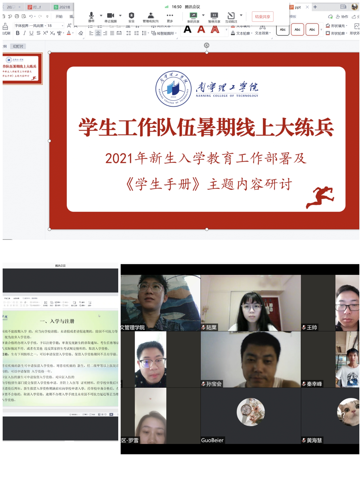 不负时光大练兵,枕戈待旦再出发。为充分汇聚育人力量,全面践行“立德树人”使命,推动学生工作队伍高质量成长与发展,2021年暑期以来,我校学工处精心组织、统筹部署,在桂林、南宁两校区掀起了学生工作队伍暑期线上大练兵的热潮。