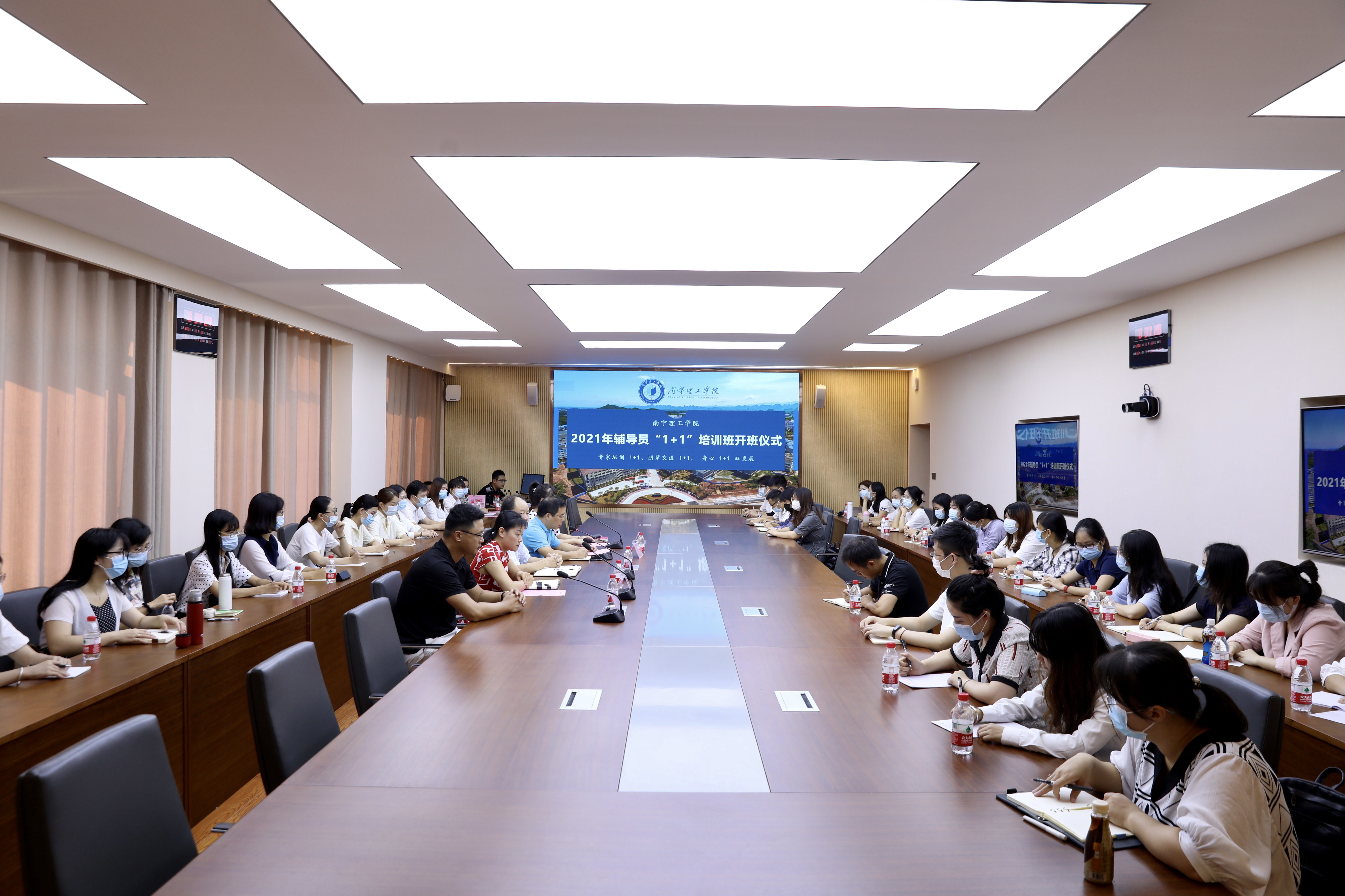 为更好落实立德树人根本任务,提高我校辅导员队伍的整体素质和工作水平,着力建设一支高水平的辅导员队伍,8月30日,我校2021年辅导员“1+1”培训班在桂林校区3324会议室正式开班。校领导尹少华、金飞、邓雪梅以及学工处、团委部门主要负责人出席开班仪式,全体新入职辅导员参加。