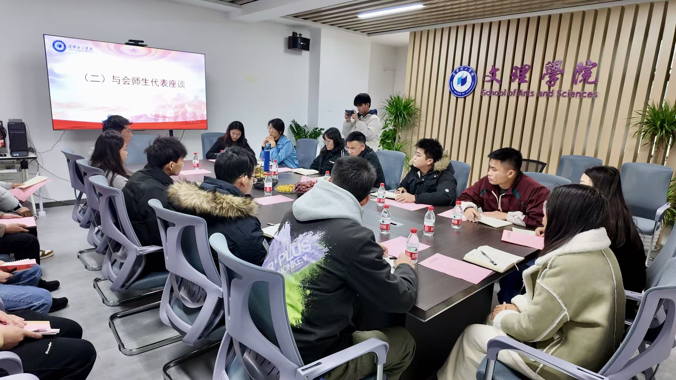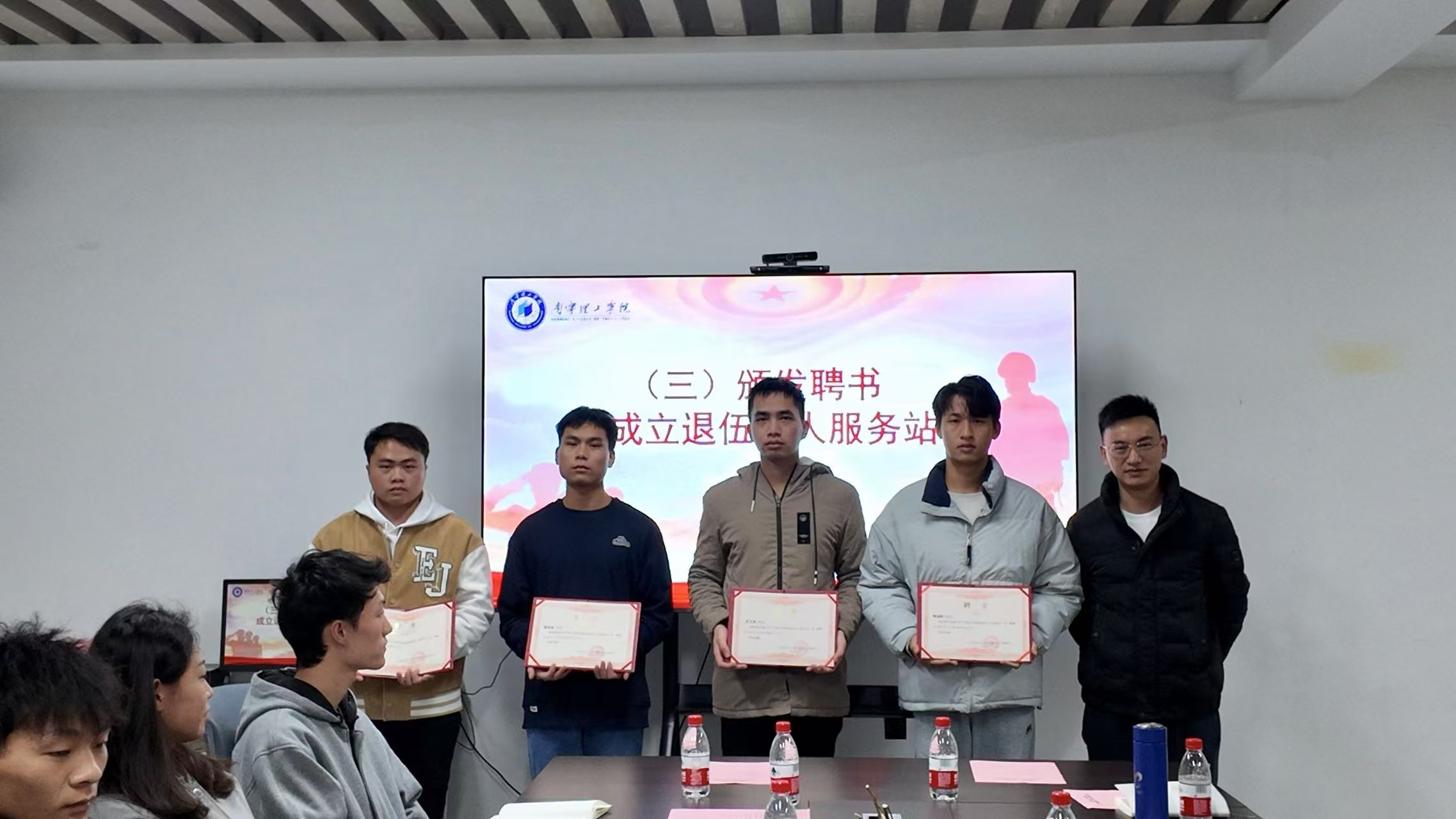 为增强广大学生对大学生入伍政策和优势的了解,动员大学生积极响应当代青年学子的伟大时代使命,组建一个有专业素养、有号召力的退伍军人服务站,同时深入了解退伍大学生返校后思想、学习、生活等各方面情况,激励继续发扬军人的优良作风。12月12日下午,文理学院在16栋144会议室召开主题为“退伍不褪色,争当领航人”退伍大学生座谈会暨聘任仪式。文理学院党总支书记刘武钢、党总支书记助理覃学鹏、2025届毕业班辅导员以及学院退伍大学生代表二十余人出席会议。