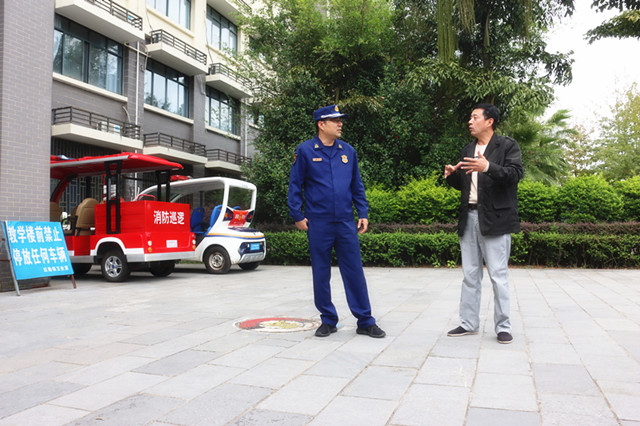 按照桂林市消防救援支队2021年10月份全市“双随机、一公开”抽查计划安排, 10月14日,荔浦市消防救援大队高参谋一行两人来我校进行消防安全督导检查。检查组分别对第三教学楼微型消防站、8号学生公寓及一食堂等消防重点区域及要害场所进行了实地查看。后勤保卫处钟木生处长和保卫中心行政人员陪同检查。