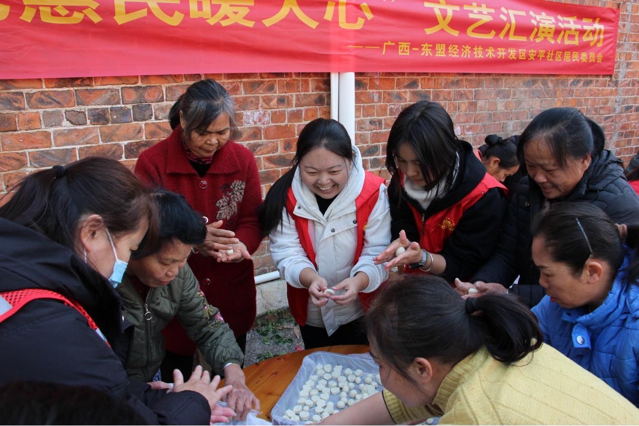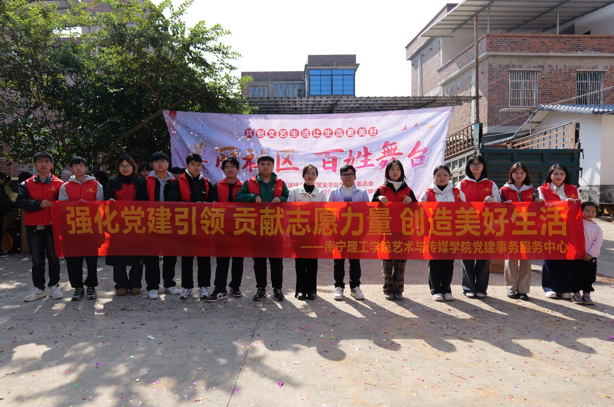 党的十八大以来,习近平总书记高度重视文化强国建设,强调“让人民享有更加充实、更为丰富、更高质量的精神文化生活”。12月28日,艺术与传媒学院党员志愿者前往武鸣区杨丁屯开展“文艺演出进乡村 文化惠民暖人心”文艺汇演志愿服务活动。学院党建组织员吴龙安,广西–东盟经济技术开发区安平社区党总支书记、居委会主任李华,携手学生党员志愿者和社区工作人员共同参与此次活动。