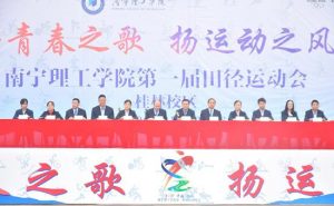 最后,由党委书记金飞宣布南宁理工学院第一届田径运动会正式开幕。希望本次运动健儿们服从裁判,尊重对手,团结协作,顽强拼搏,做到“友谊第一,比赛第二”,并以积极饱满热情的态度参加本届运动会,期待运动健儿们在本次运动会中夺得好成绩。