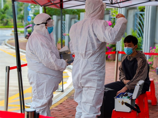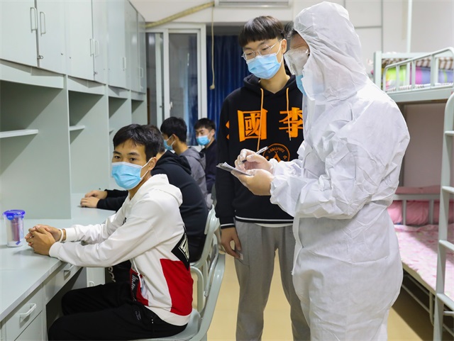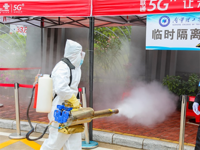 防控办各工作组按照《南宁理工学院新冠肺炎疫情防控应急处置演练工作方案》,密切配合、有序组织,模拟了“学生返校出现体温异常”、“学生在宿舍内出现发热症状”两个场景,对身体异常的学生从发现和报告到体温复测、信息询问、安排送医、密切接触者排查、环境消杀等应急处置流程进行了全过程演练。