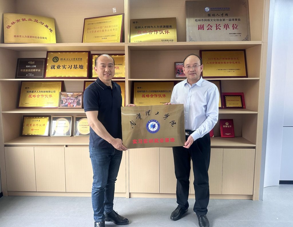 随后校企双方就智能建造等专业人才培养、实习实训基地、产业学院等方面洽谈合作意向,并共同参观了企业运营中心。最后,校企双方举行了“南宁理工学院实习实训就业基地”挂牌仪式,标志着我校与桂林市盛才人力科技有限公司的校企合作迈入常态化、实体化阶段。
