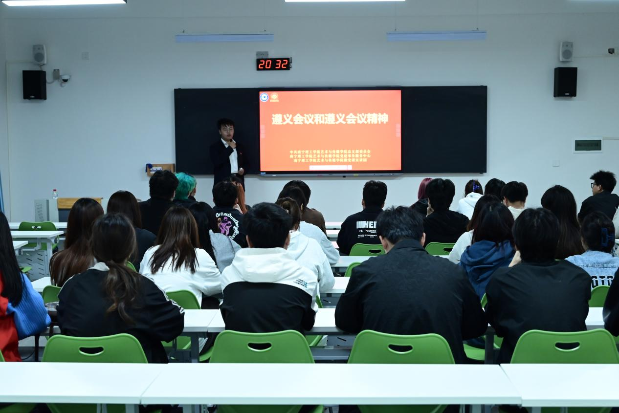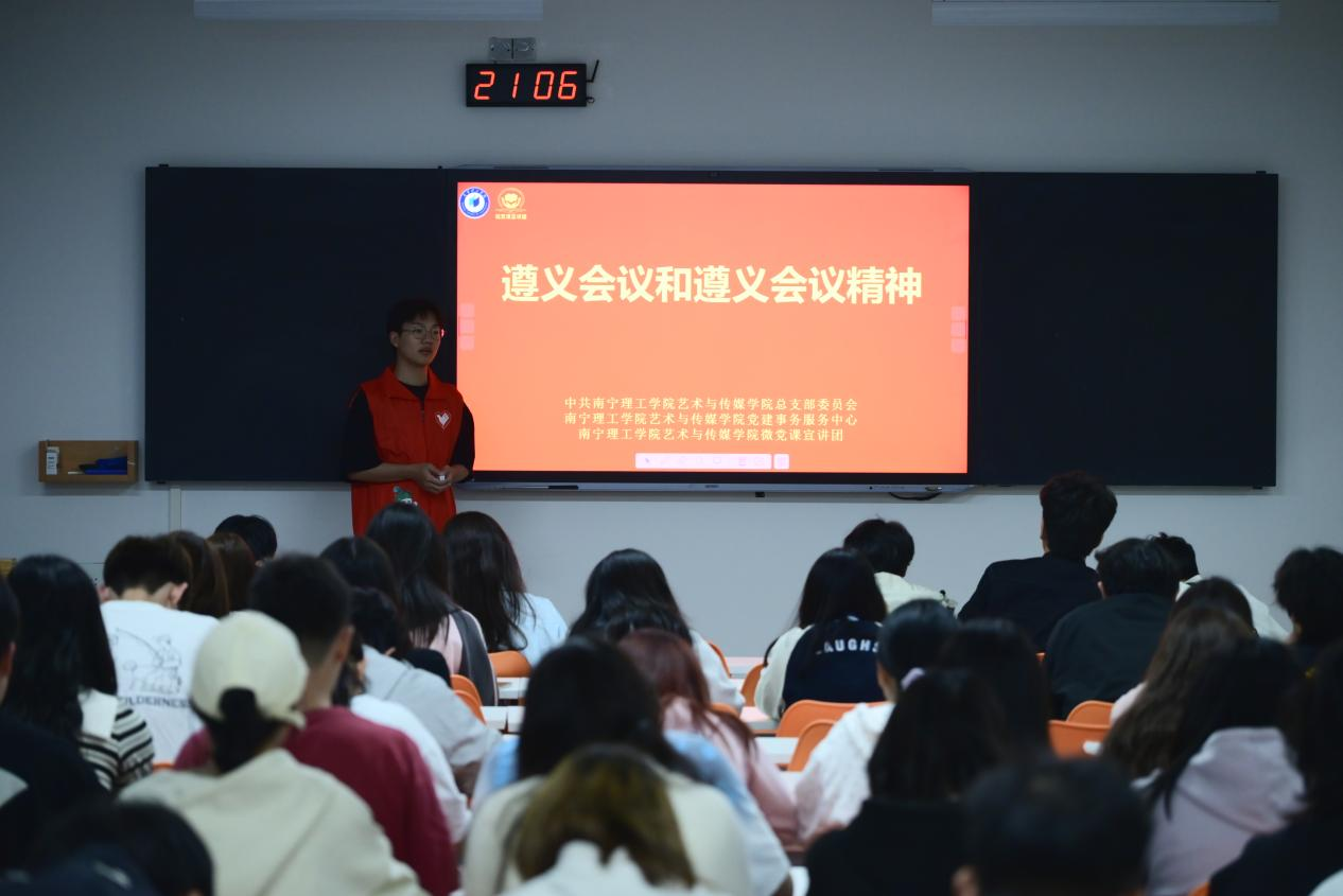 党的十八大以来,习近平总书记多次强调遵义会议精神的历史作用和时代价值,要运用好遵义会议历史经验,让遵义会议精神永放光芒。为深入学习贯彻习近平总书记关于“要弘扬长征精神和遵义会议精神”的讲话精神,扎实推进“强国复兴有我”群众性主题宣传教育活动走深走实,3月28日,艺术与传媒学院微党课宣讲团在南宁东盟校区A2315和A2401教室为2024级数字媒体艺术专业学生开展“遵义会议与遵义会议精神”专题宣讲,旨在引导青年学子赓续红色血脉,坚定理想信念。