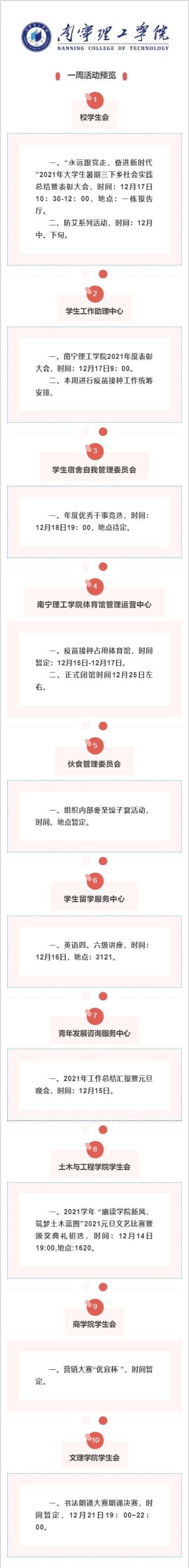 第15周学生活动预告